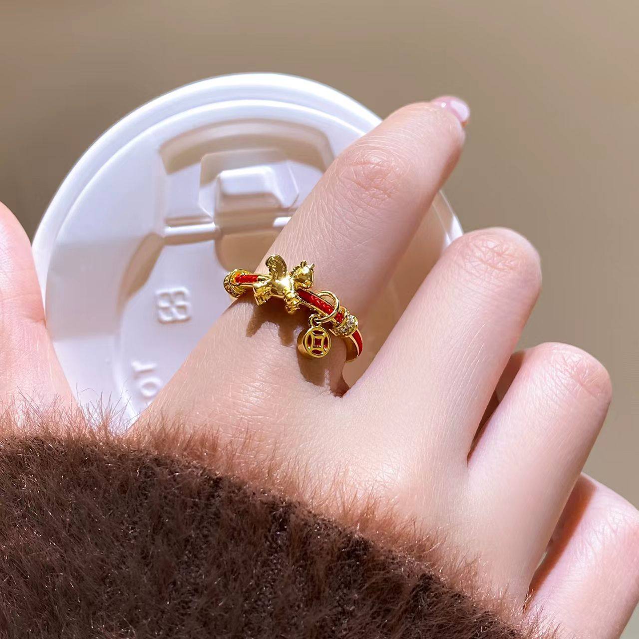 红色编织绳小马开口戒指女2026新款爆款食指指环小众设计生肖佩戴