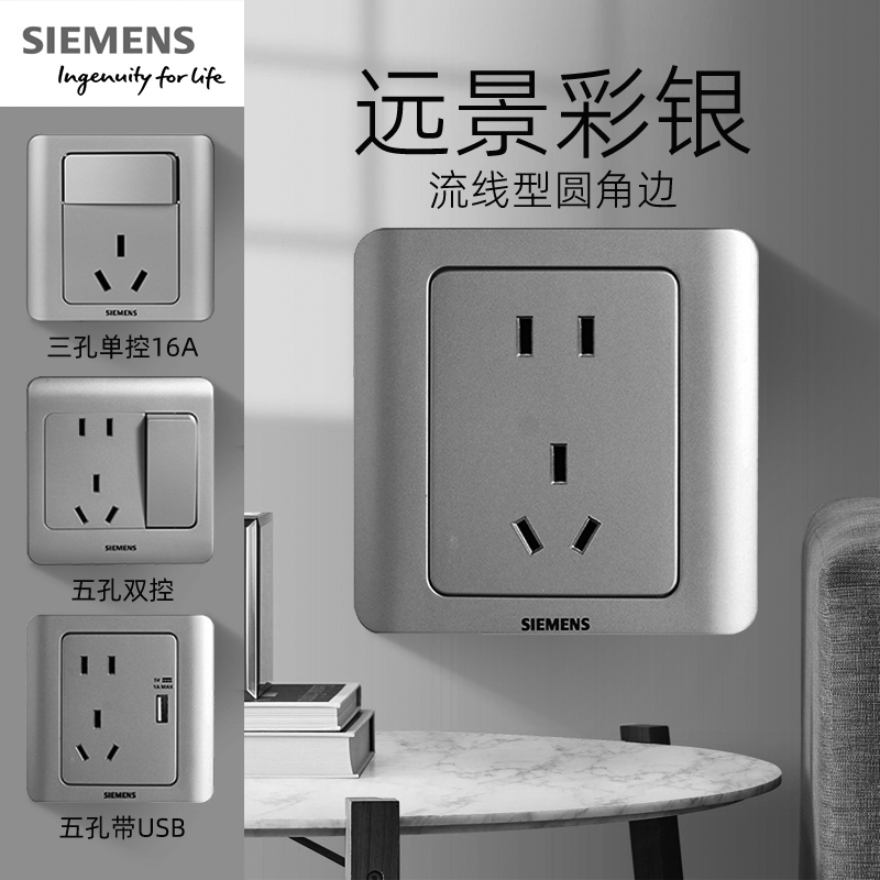 西门子开关插座远景彩银家用 五孔16A空调墙壁带单控双控墙壁面板