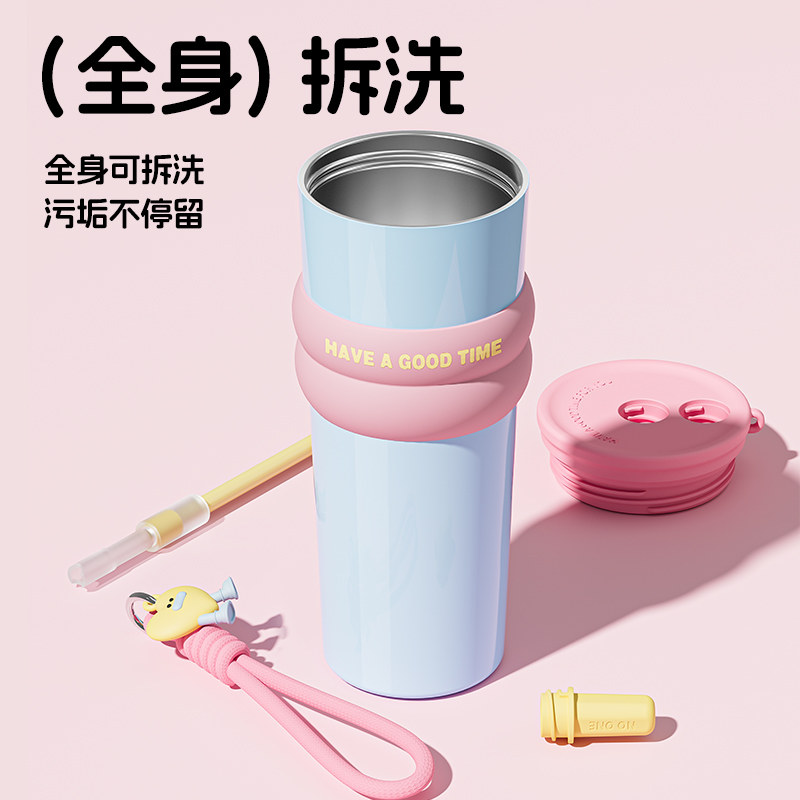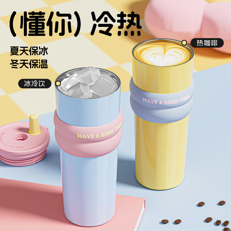 保温杯316不锈钢双饮咖啡杯大容量女高颜值随行吸管水杯情侣杯子