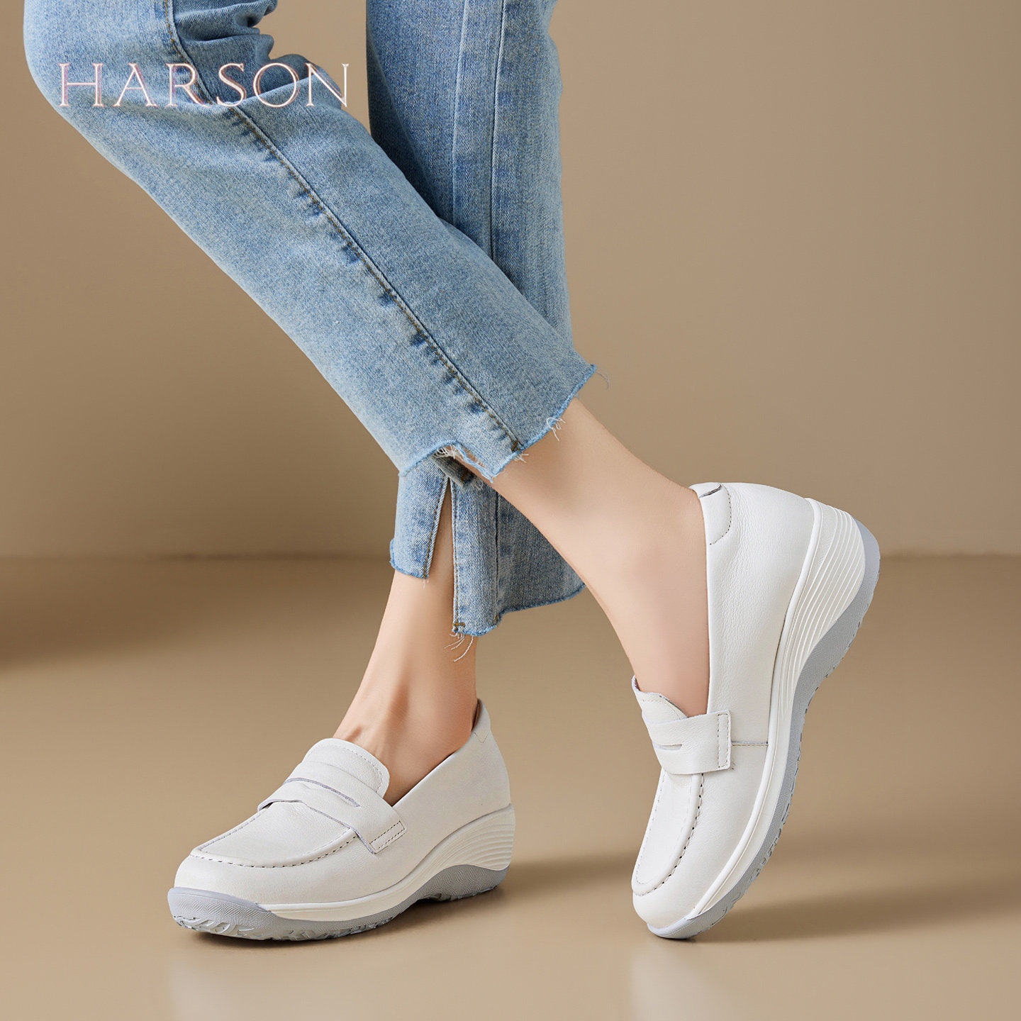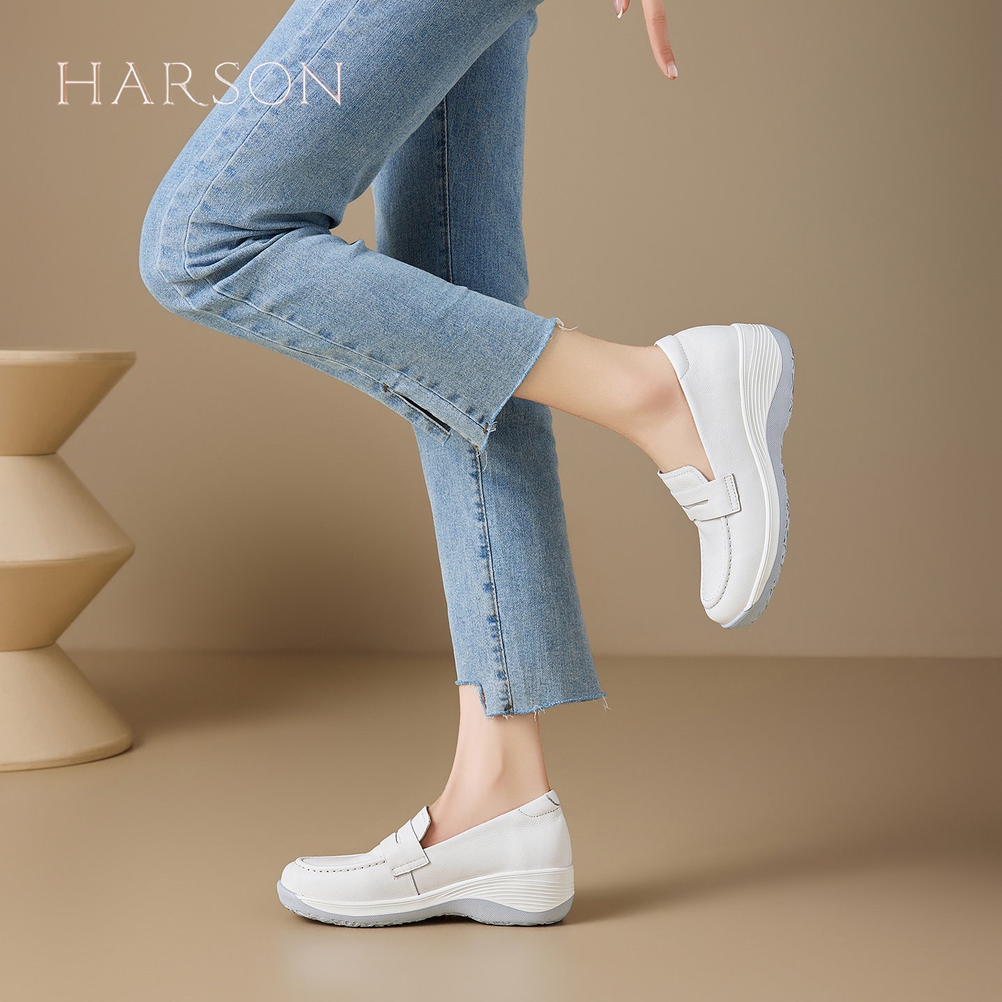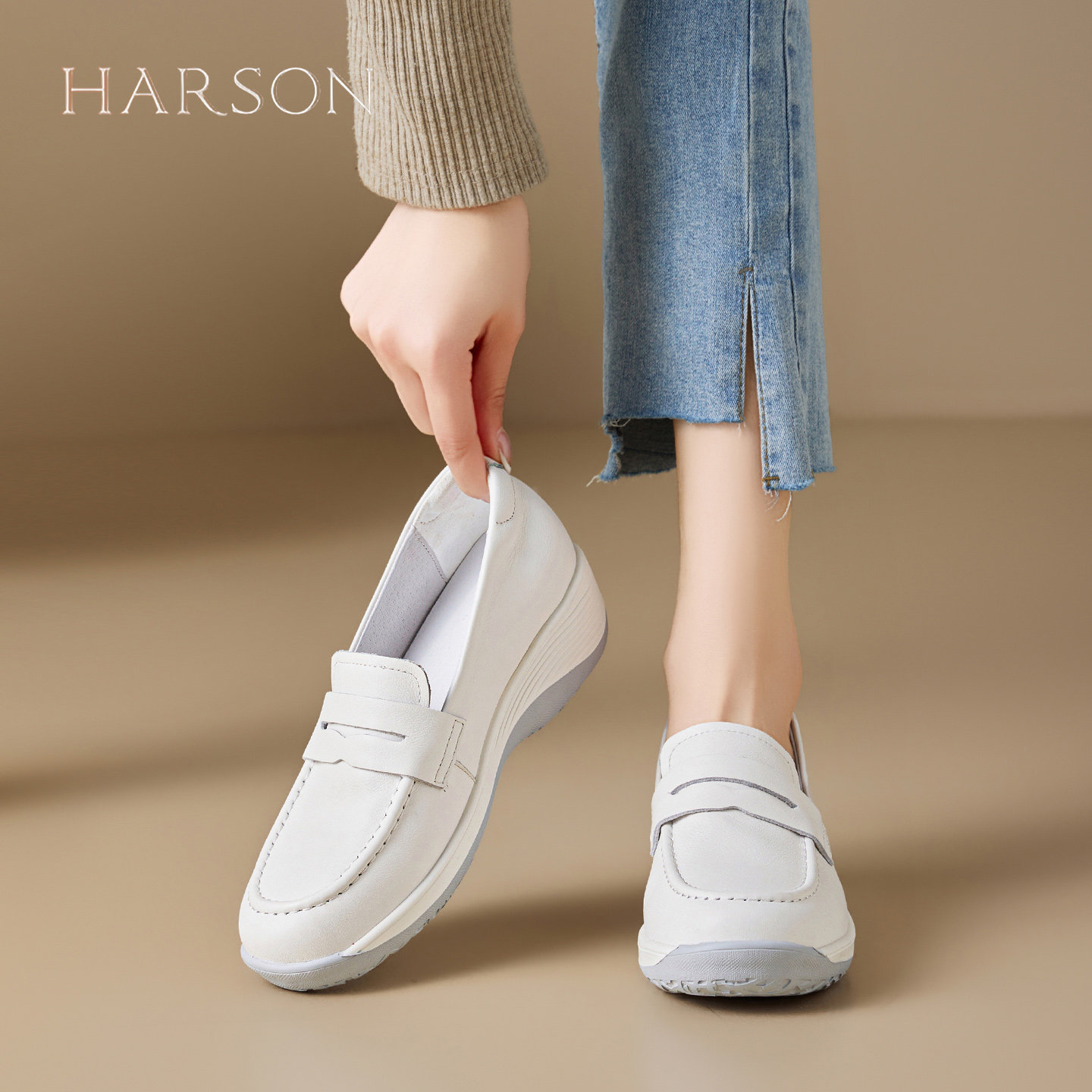 哈森厚底真皮乐福鞋女鞋子26春季新款一脚蹬轻便休闲豆豆鞋护士鞋