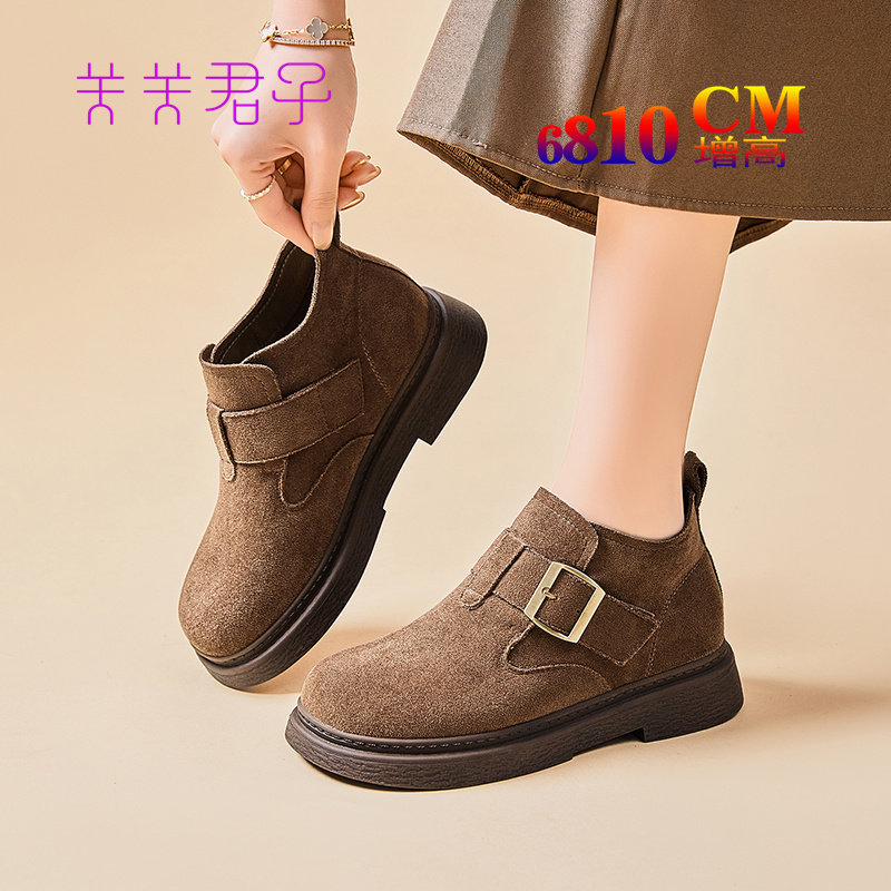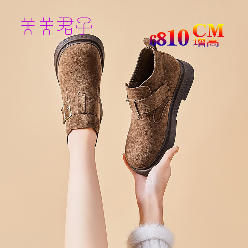 内增高马丁靴女小个子春秋单靴厚底显瘦弹力冬季加绒英伦真皮短靴
