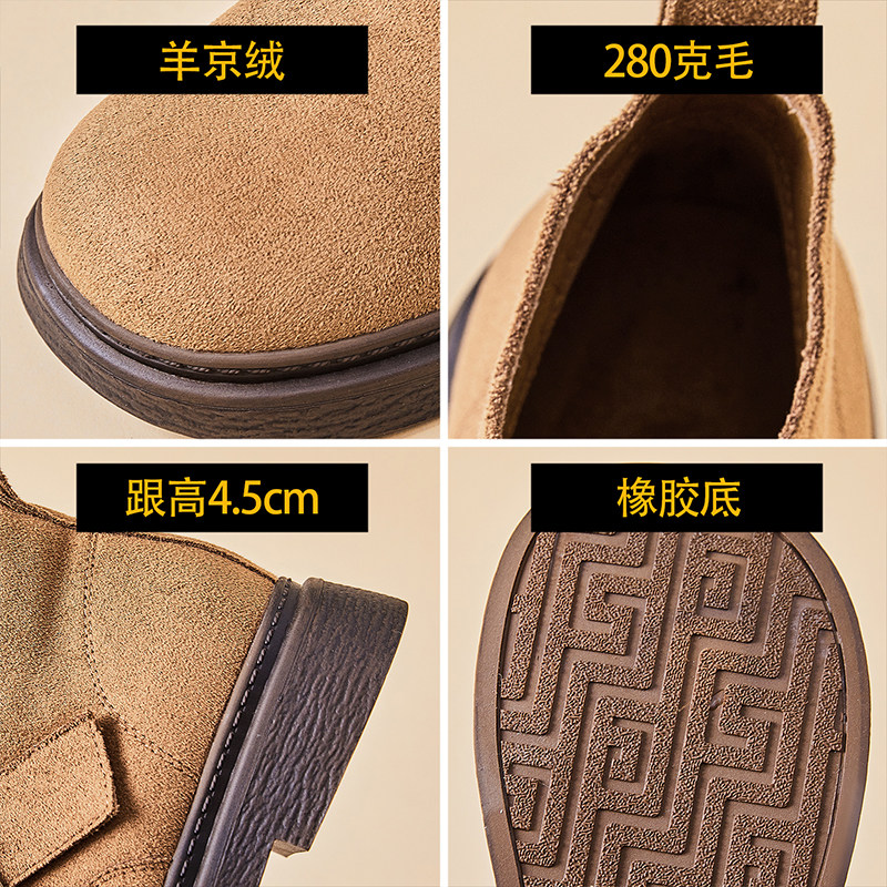 勃肯马丁靴女冬季新款软底厚底小个子增高豆豆鞋一字带棉靴子绒面