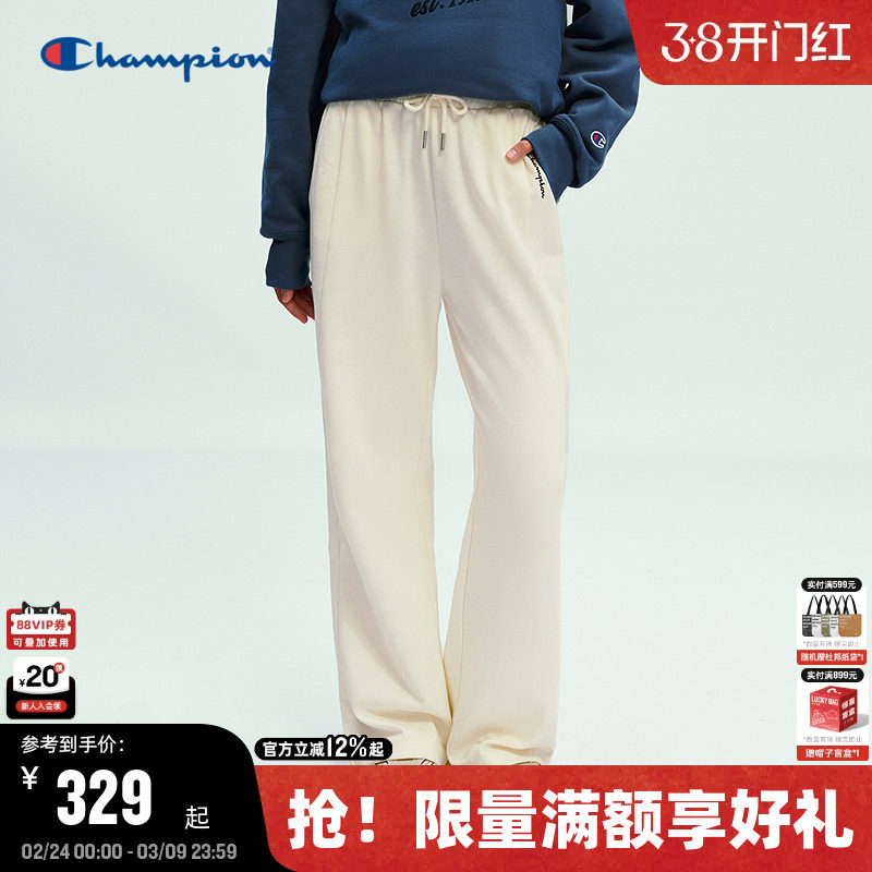 Champion冠军直筒卫裤女2026春季新款针织长裤宽松阔腿裤休闲裤女