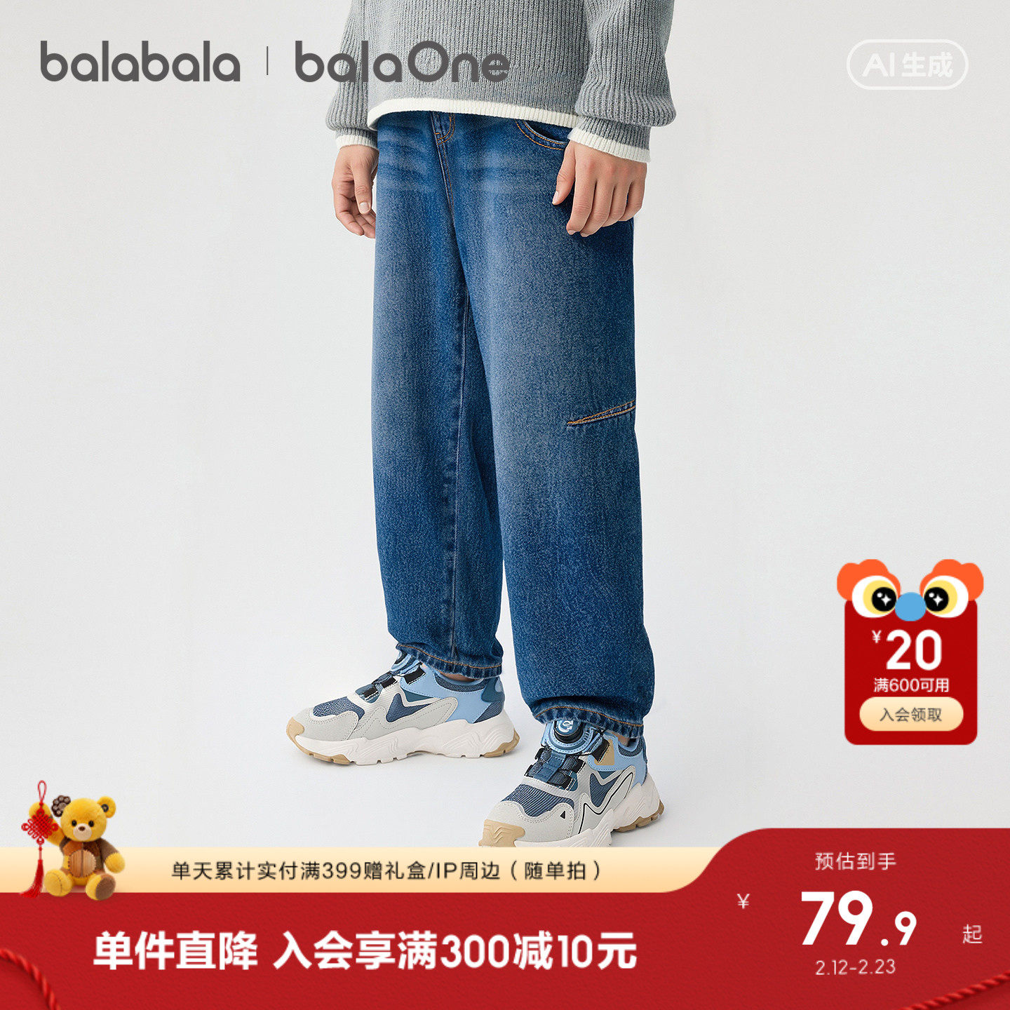 巴拉巴拉童装男童长裤儿童裤子2026新款春装宽松牛仔裤复古潮休闲