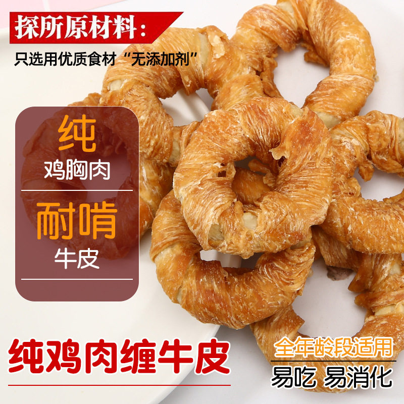 狗狗零食磨牙棒鸡肉复合牛皮甜甜圈洁齿宠物零食咬胶中小型犬通用