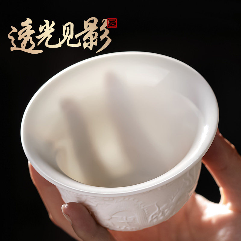 2025新款德化白瓷功夫茶具套装家用轻奢高档浮雕盖碗茶杯泡茶专用