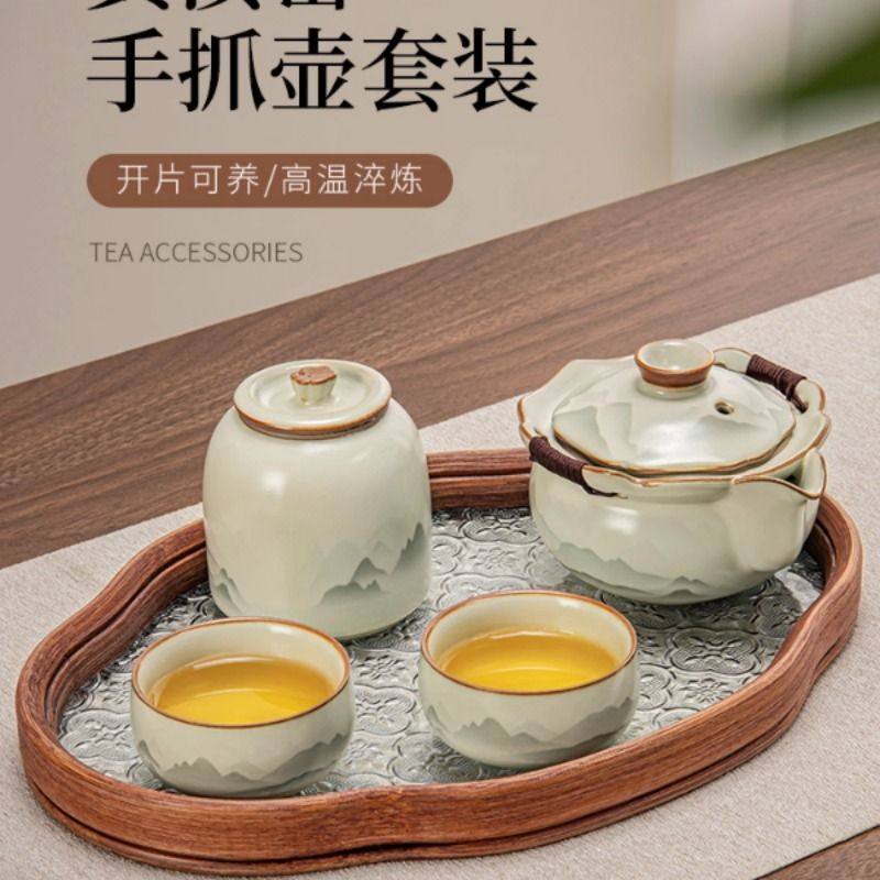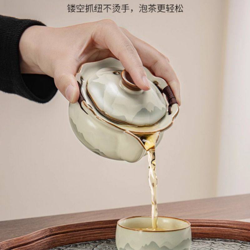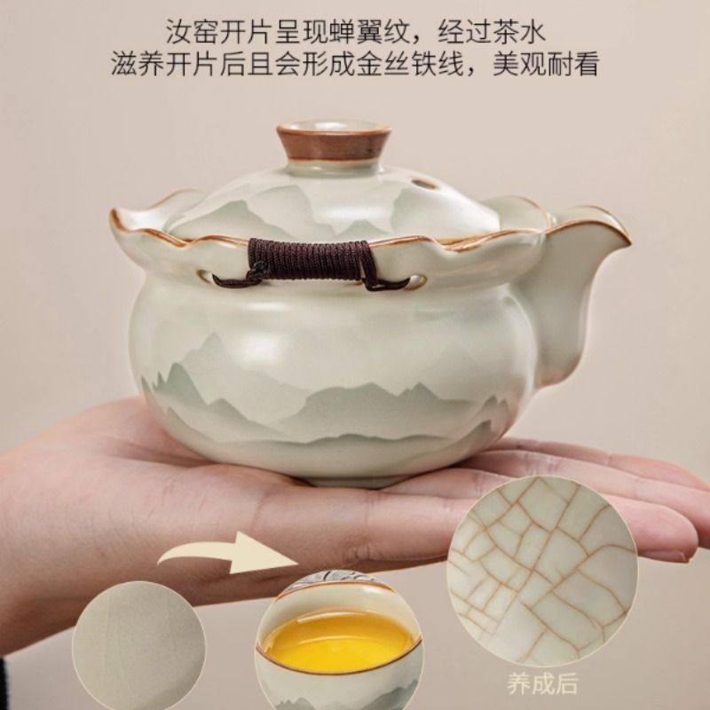 2025新款汝窑盖碗茶杯泡茶碗单个高档带盖功夫茶具陶瓷防烫手抓壶