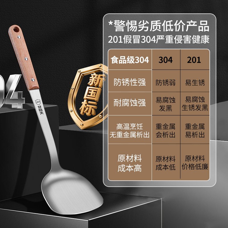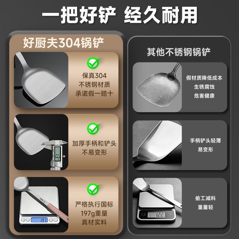 好厨夫锅铲厨具炒勺木柄把汤勺食品级304不锈钢炒菜铲子家用套装