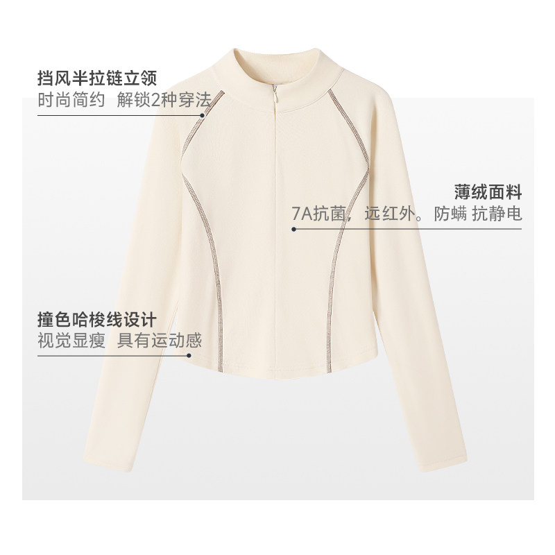 蕉下半拉链摇粒绒打底衫女士秋冬修身新款保暖户外上衣长袖T恤