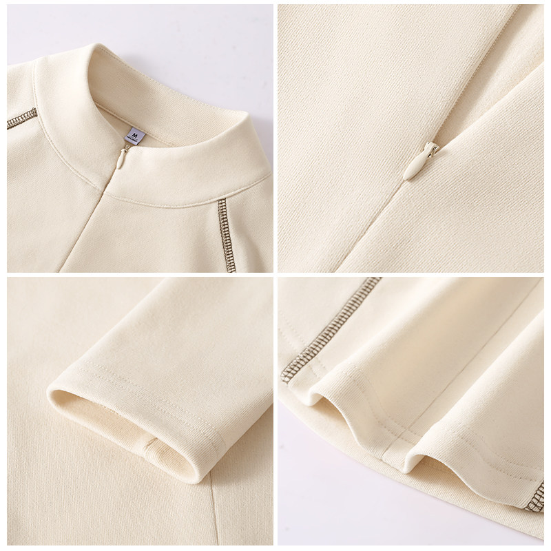 蕉下亨利衫女长袖T恤v领秋冬修身保暖低领打底衫半开领白色上衣