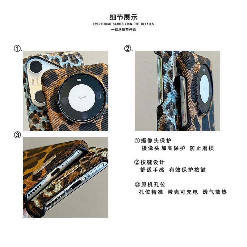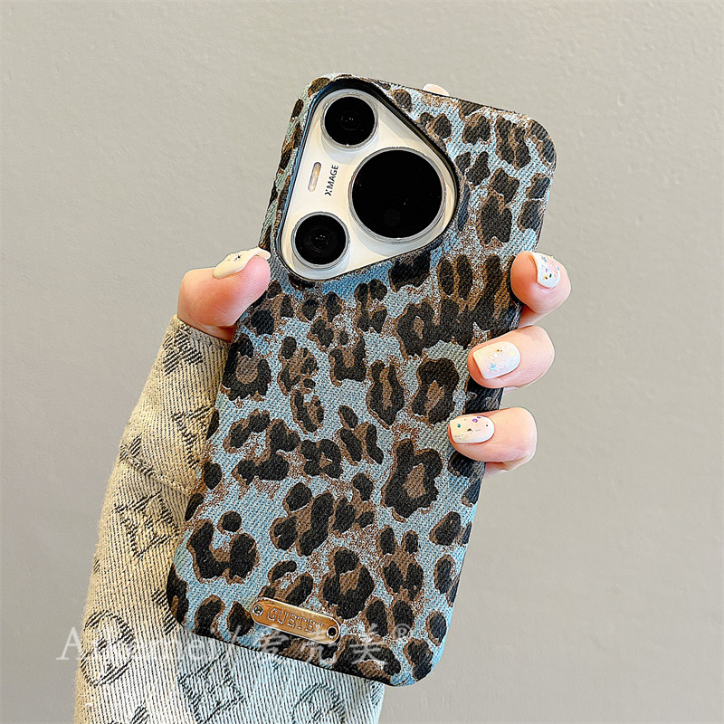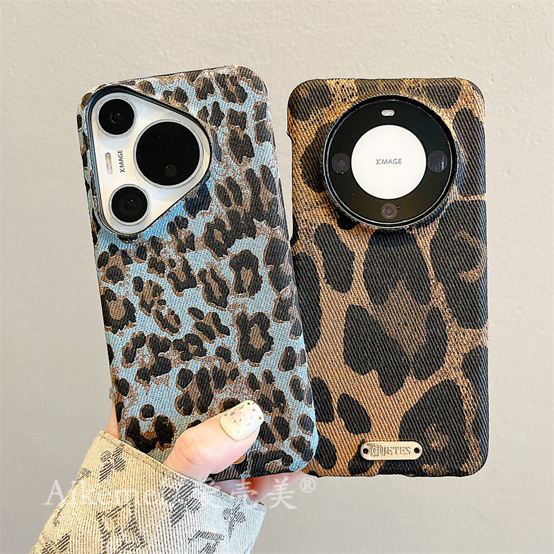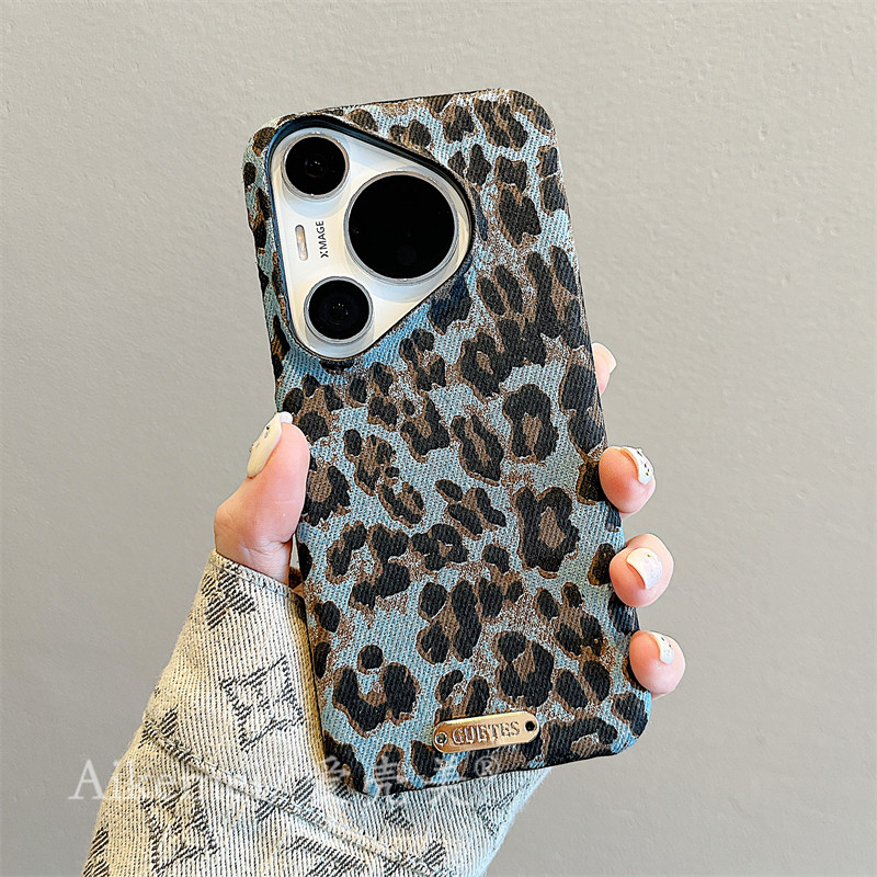 适用华为pura70pro+新款手机壳mate70pro+秋冬个性绒布豹纹金属标签Pura70半包防摔高级感mate60pro+女保护套