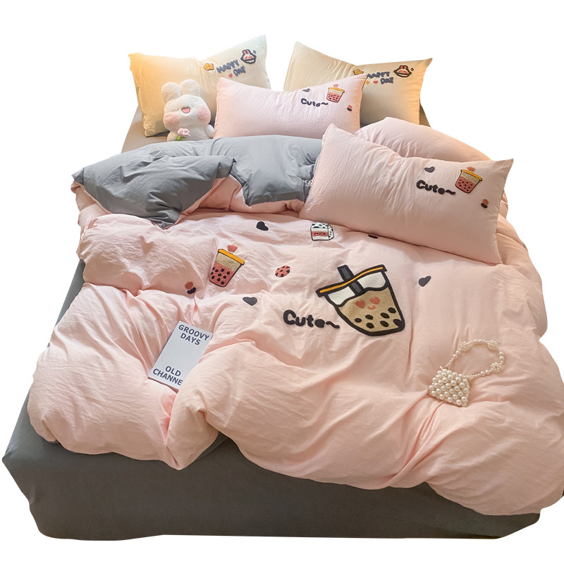 A类水洗棉双层纱四件套被罩非全棉纯棉床单人学生宿舍被套三件套