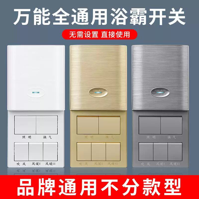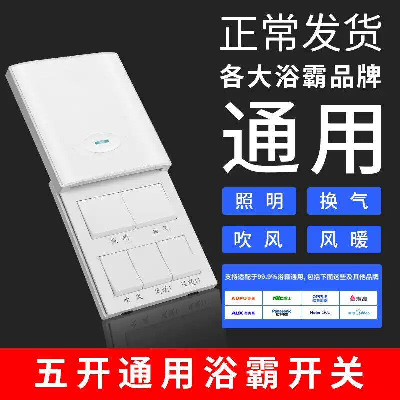 86型浴霸开关五开五合一通用卫生间四开浴室暖风机风暖开关面板