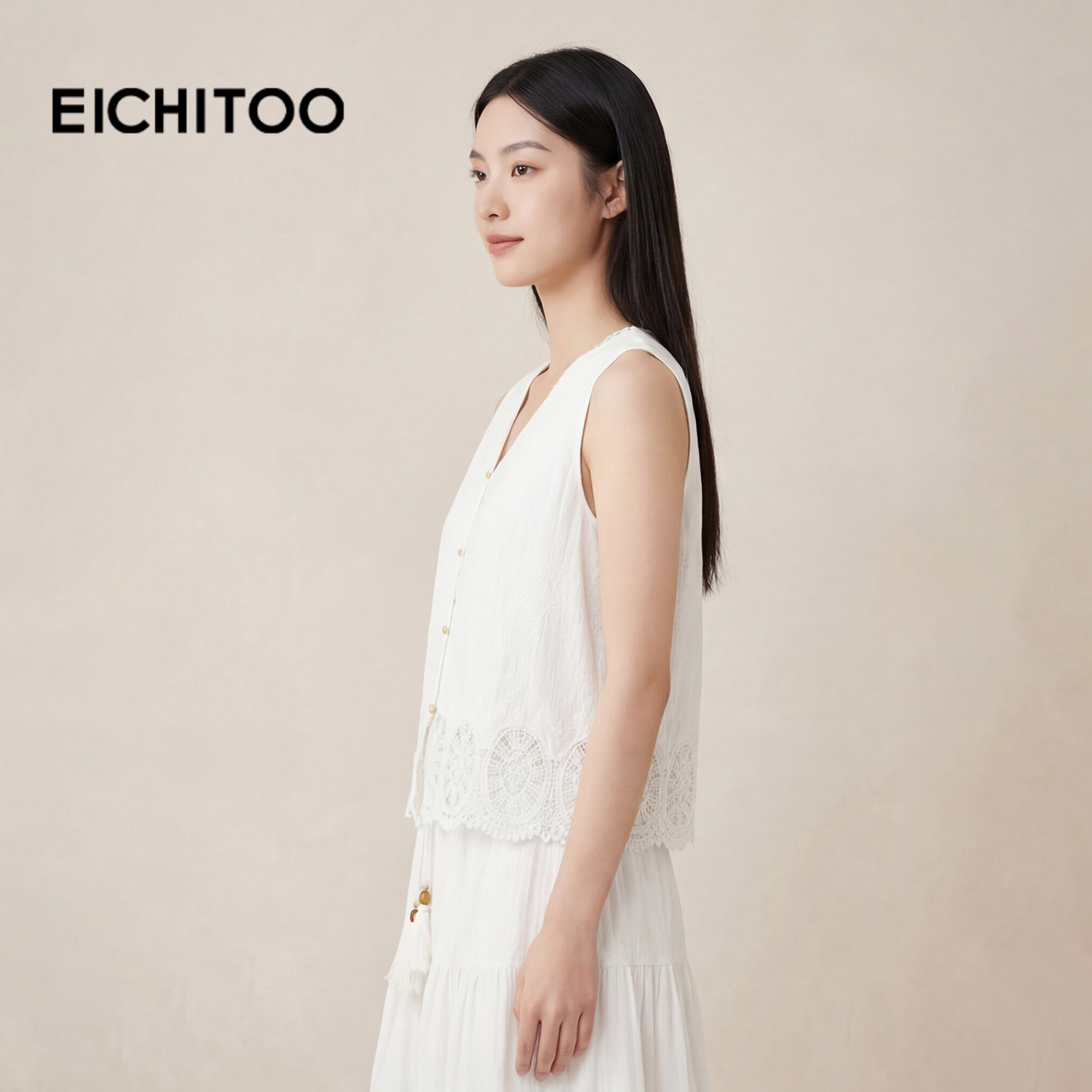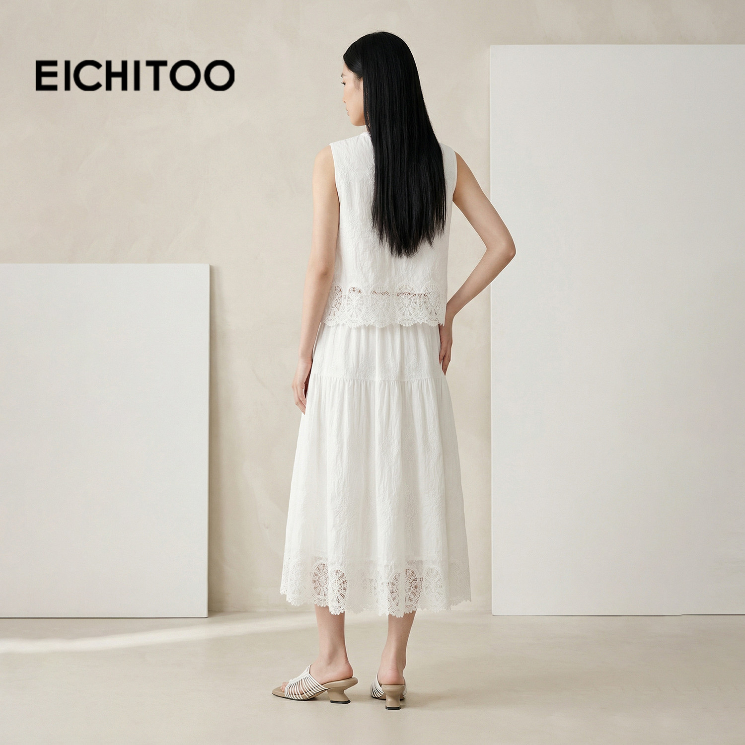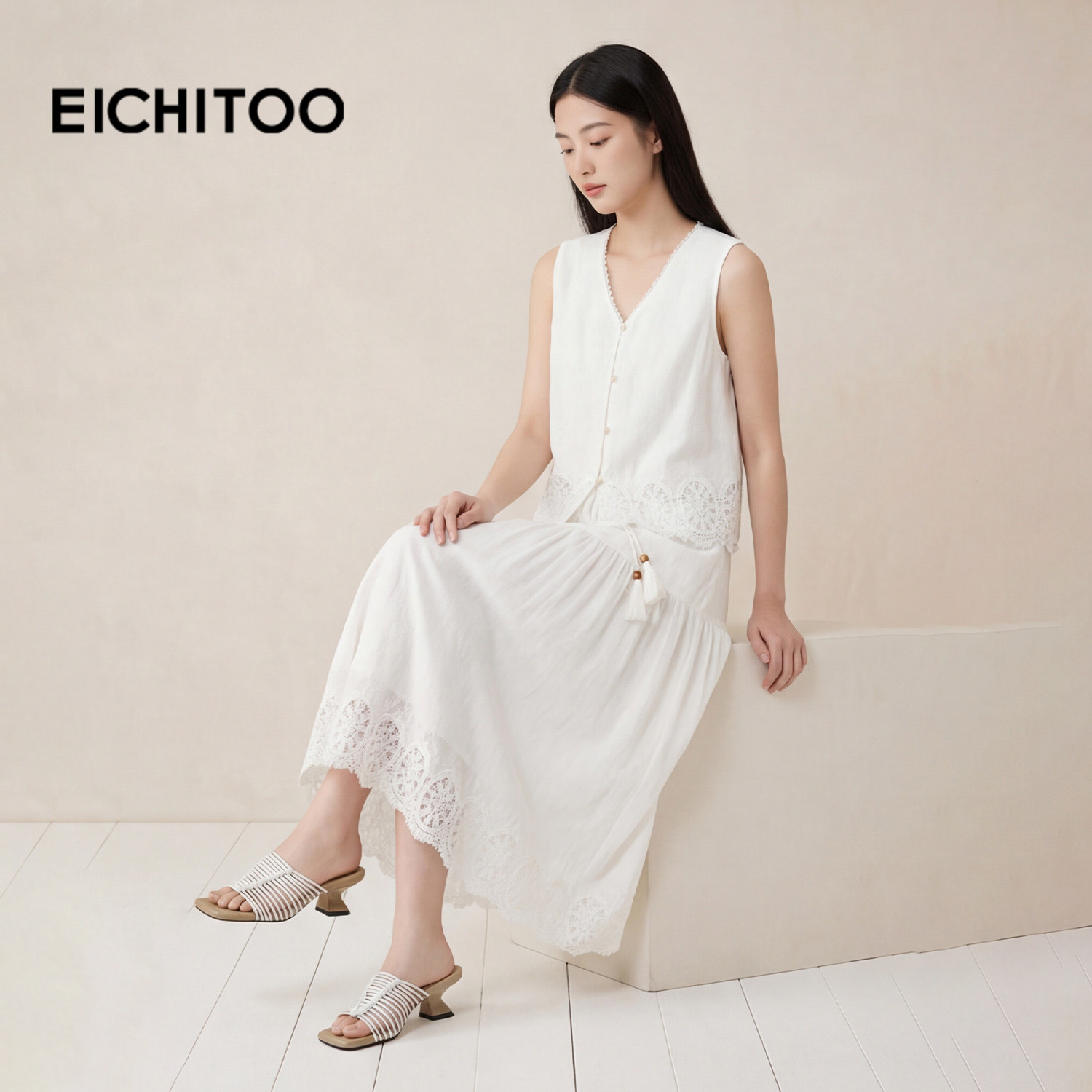 爱居兔优雅气质约会套装2026年夏季新款女舒适轻薄小白裙套装