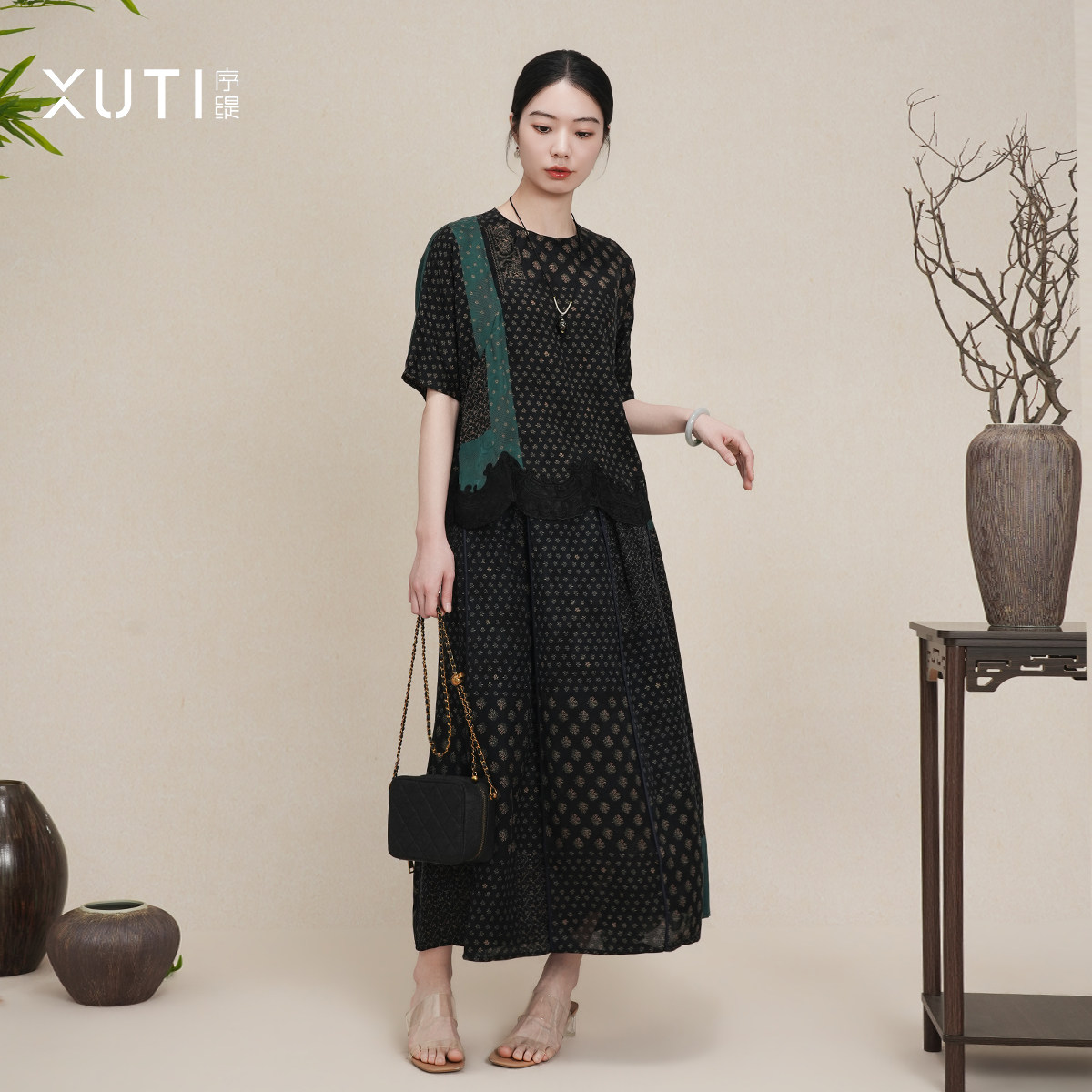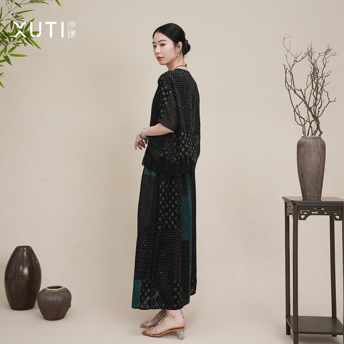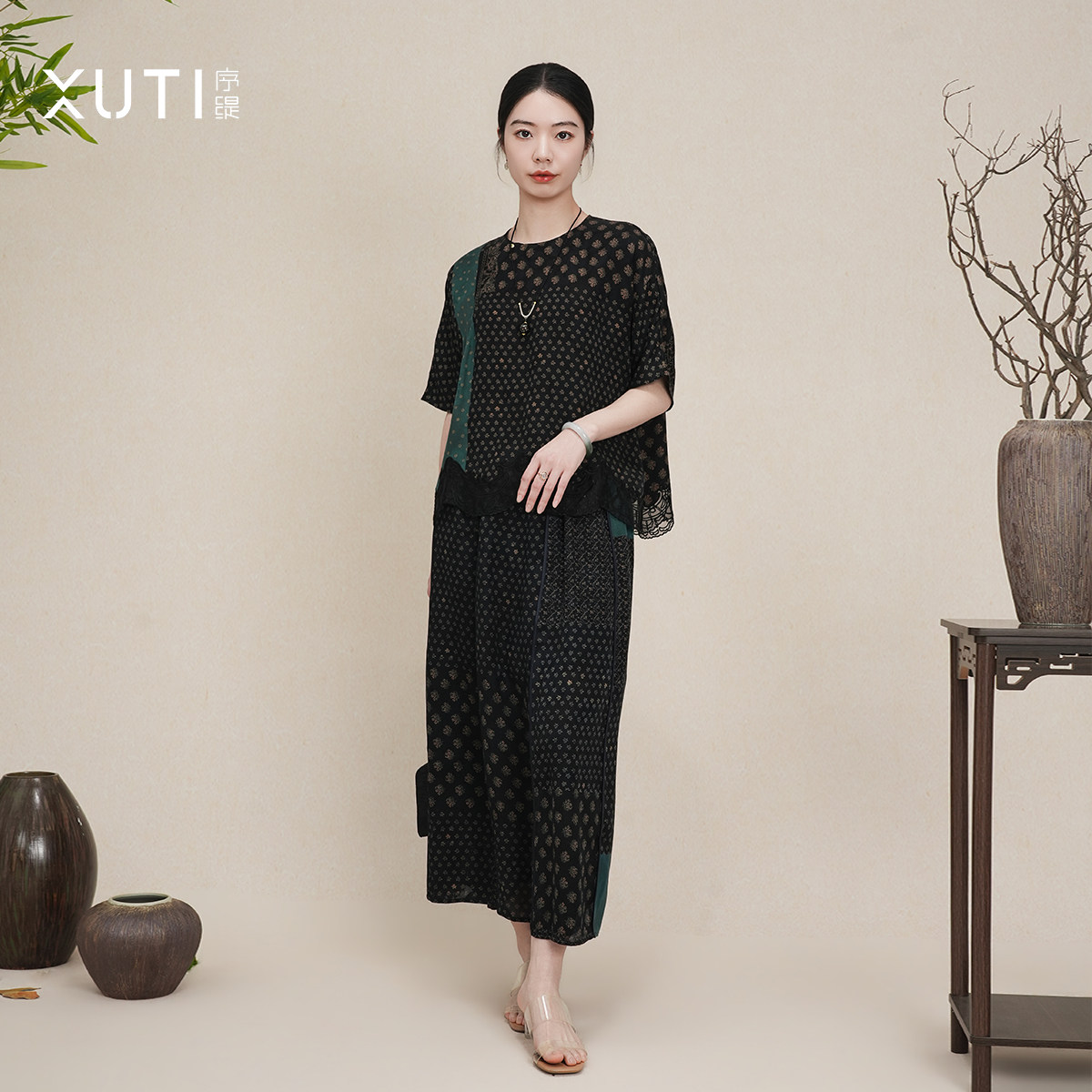 序缇质造100%桑蚕丝新中式套装女2026新款上衣+半身裙H116-28323