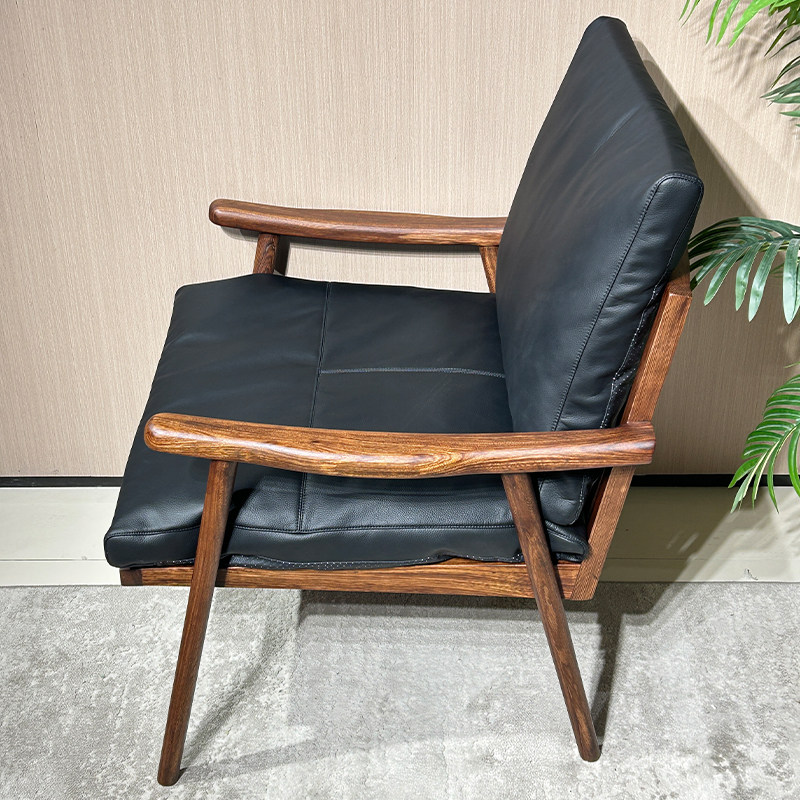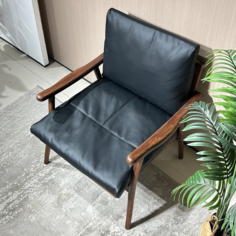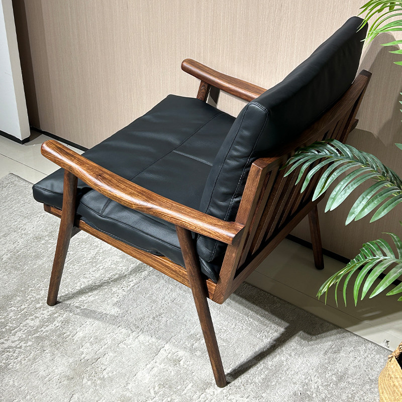 全实木休闲椅现代简约客厅轻奢真皮单人沙发椅阳台软包懒人椅子