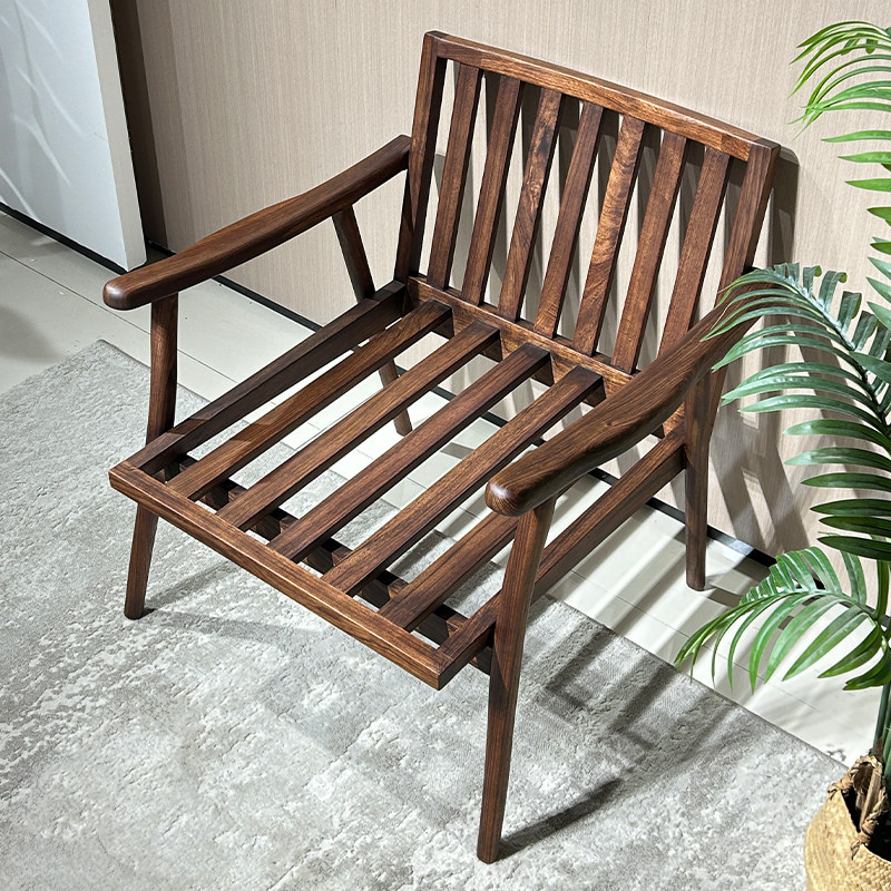 政府补贴新中式实木单人沙发椅客厅躺椅胡桃木椅子单椅阳台休闲椅