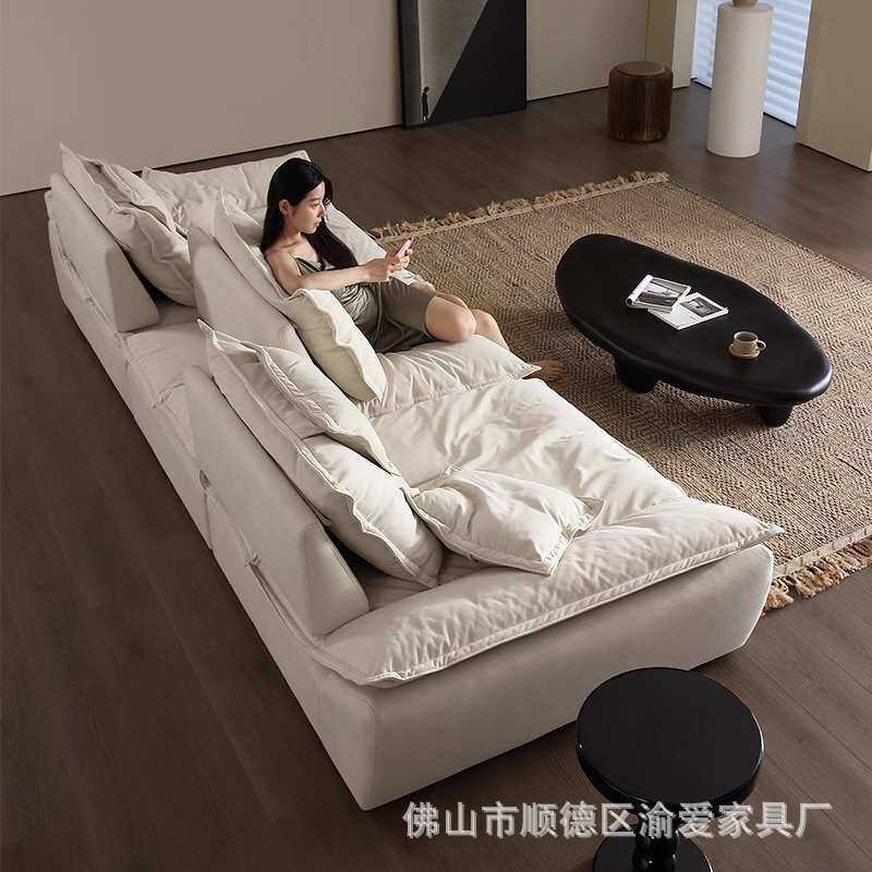 可调节翻船沙发现代磨砂布艺羽绒大坐深客厅大小户型奶油风猫抓布