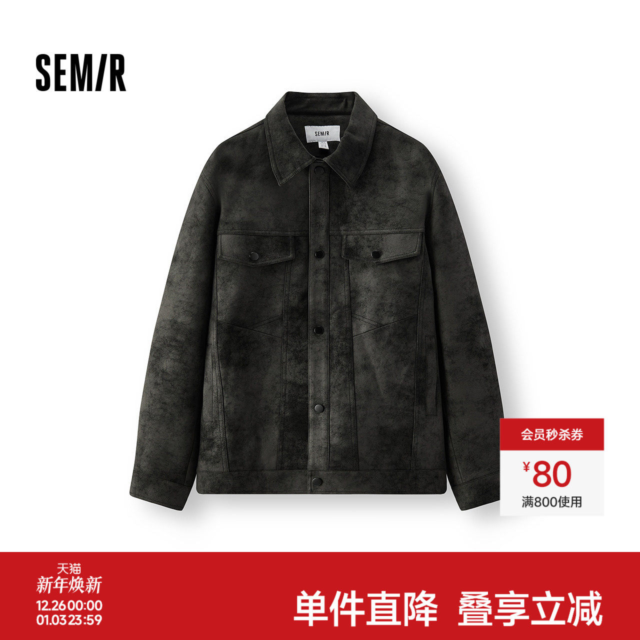 [商场同款]森马夹克男废土风仿皮衣2025春季新款机车外套潮酷时髦