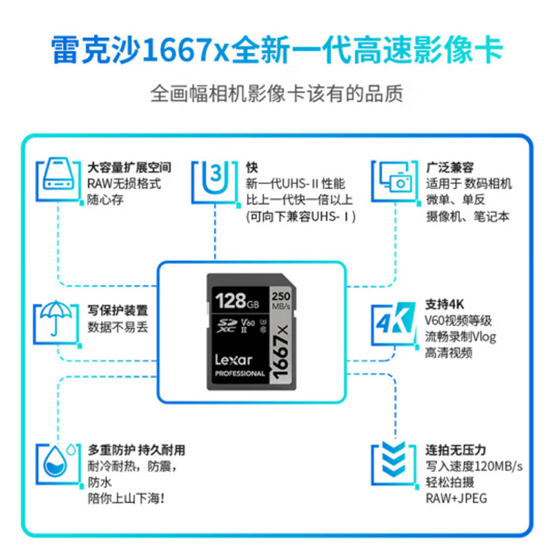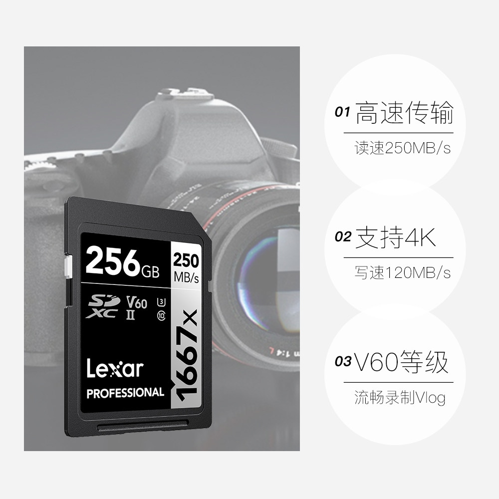 【自营】雷克沙UHS-II SD卡64/128G/256G单反摄像机存储内存卡V60