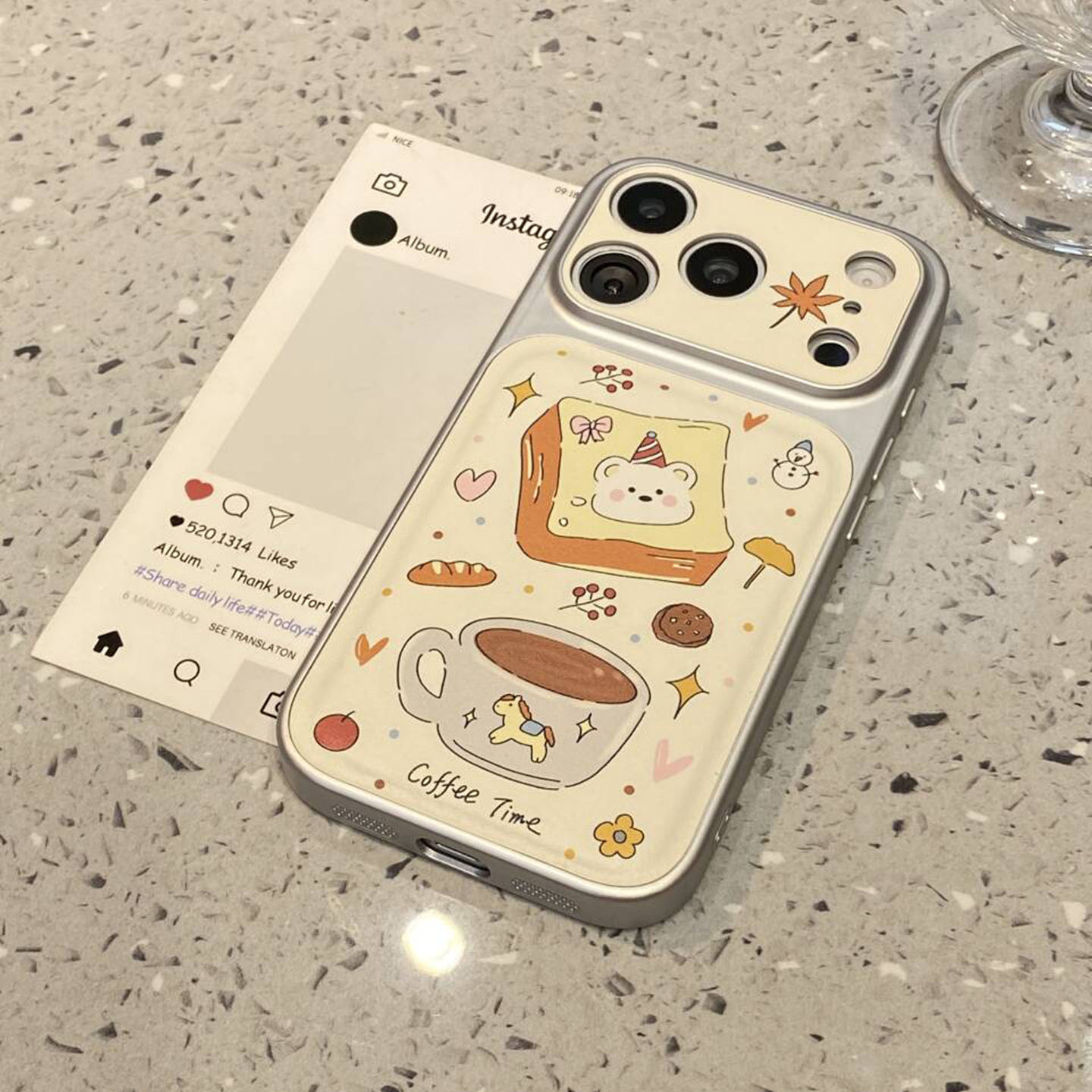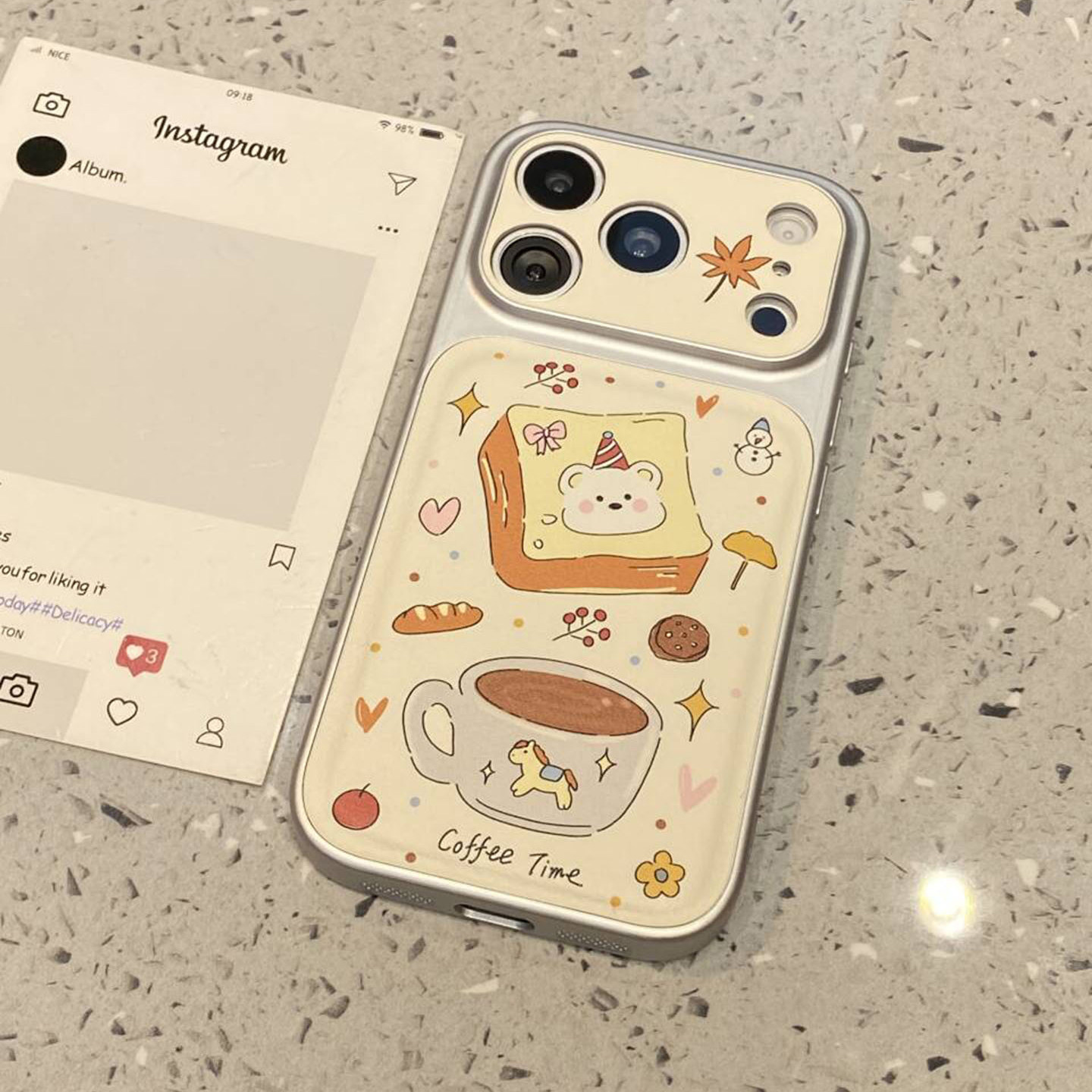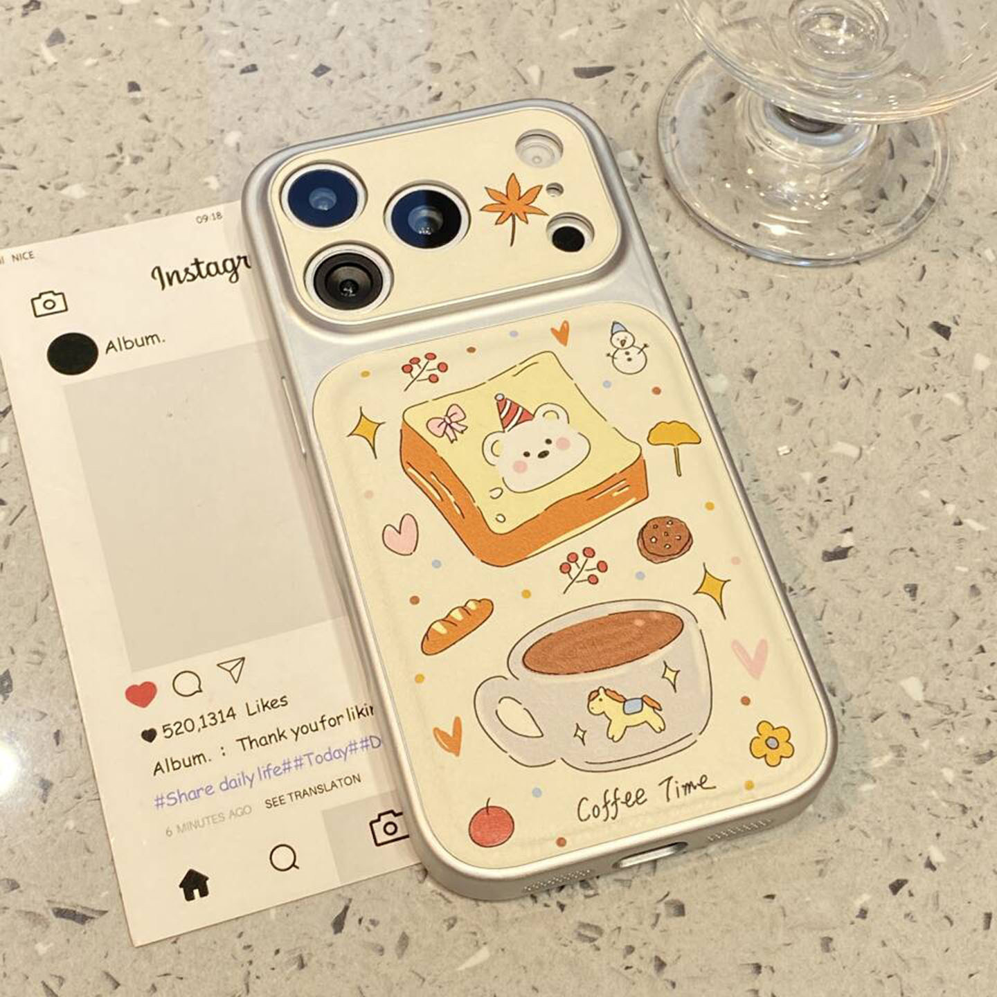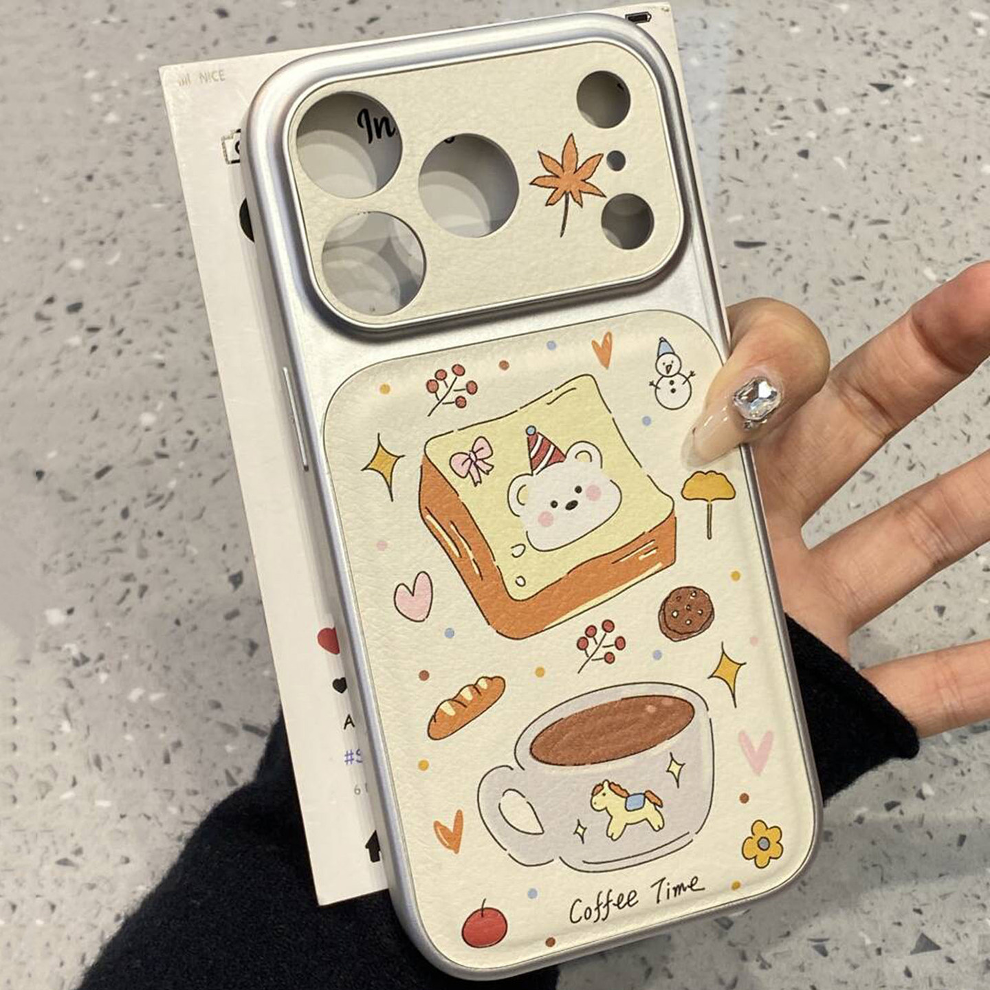 日韩ins可爱吐司小熊咖啡适用于苹果17pro手机壳iphone16保护套14皮质17全包新款15promax小众max超火手机套