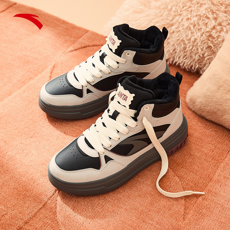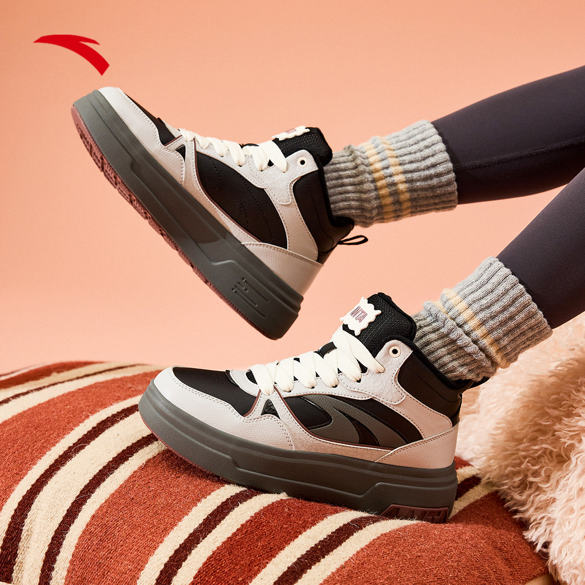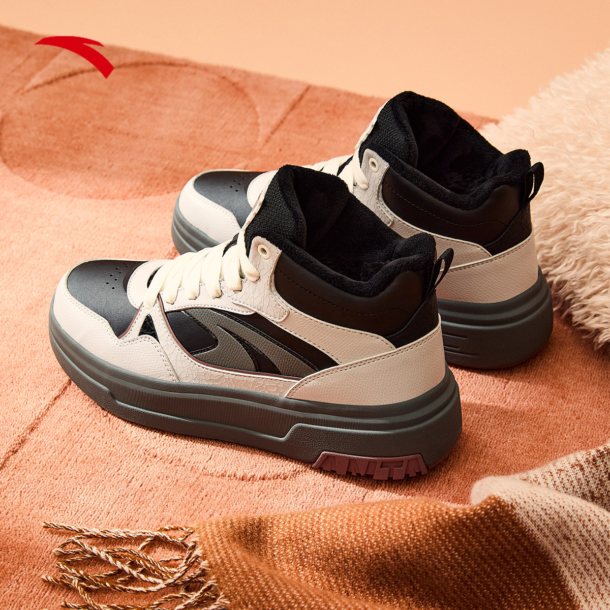 安踏松饼2丨加绒高帮板鞋女春季加厚棉鞋休闲百搭厚底增高运动鞋