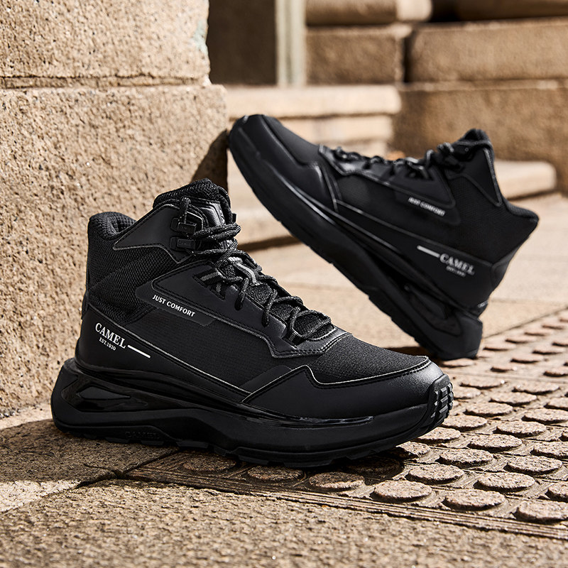 骆驼男鞋2025冬季厚底耐磨户外登山鞋止滑城市休闲高帮保暖运动鞋