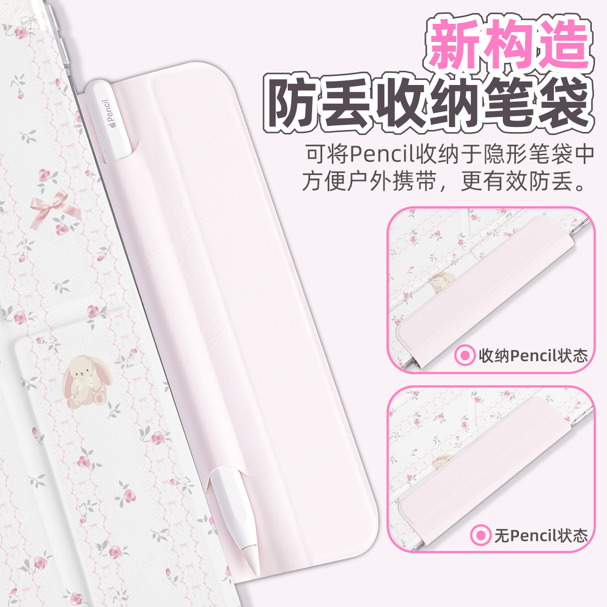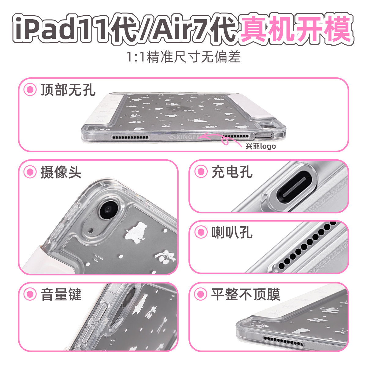兴菲iPad11保护壳全包边真机开模搭扣笔袋Air7代11英寸彩绘亚克力防弯3Y折2025无笔槽硬壳防摔苹果10紫色小兔