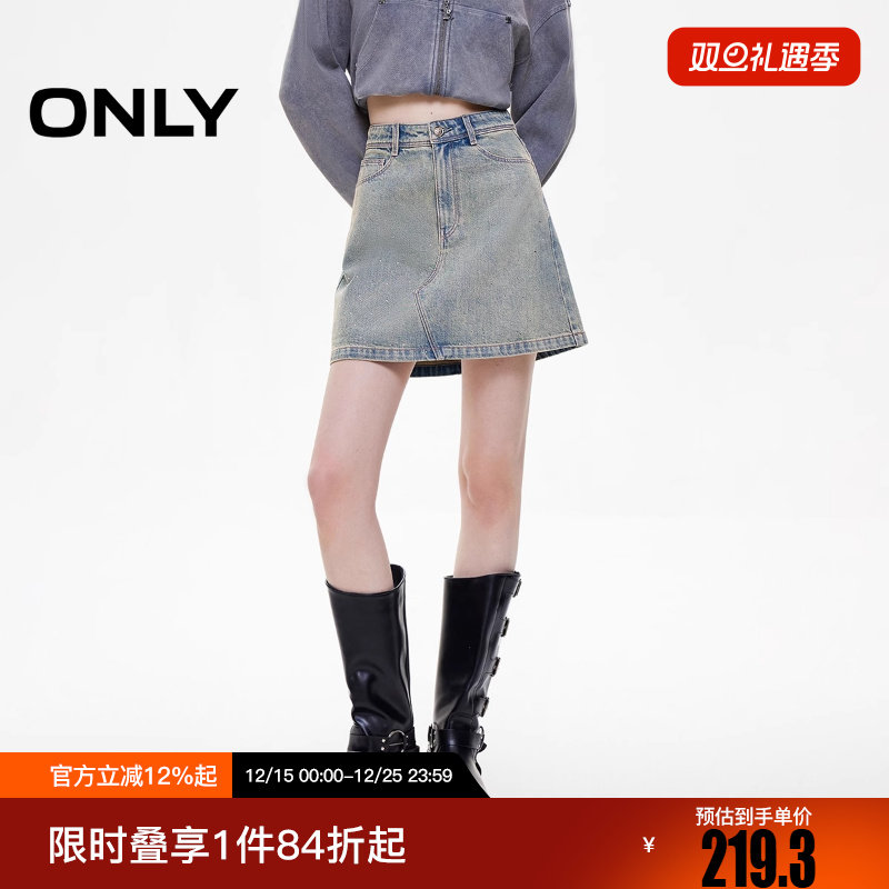 ONLY2025冬季新款重工烫钻A字高腰短裙牛仔半身裙女|125137031
