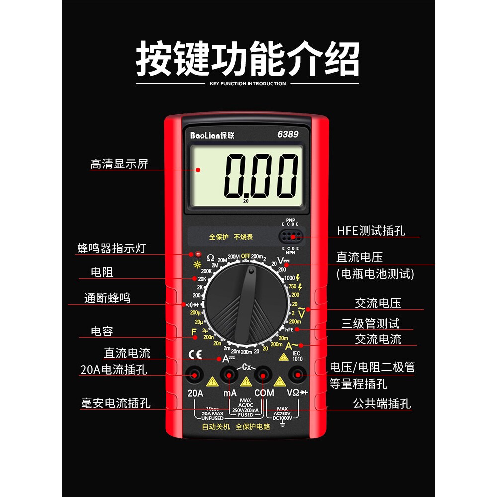 新款高精度防烧数字万用表多功能万用表电工专用维修万能表