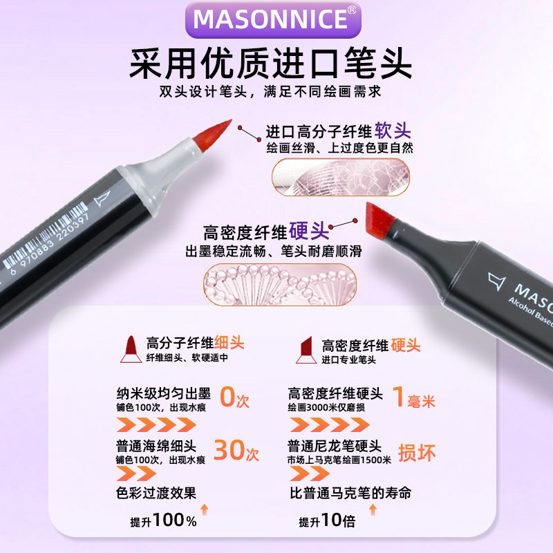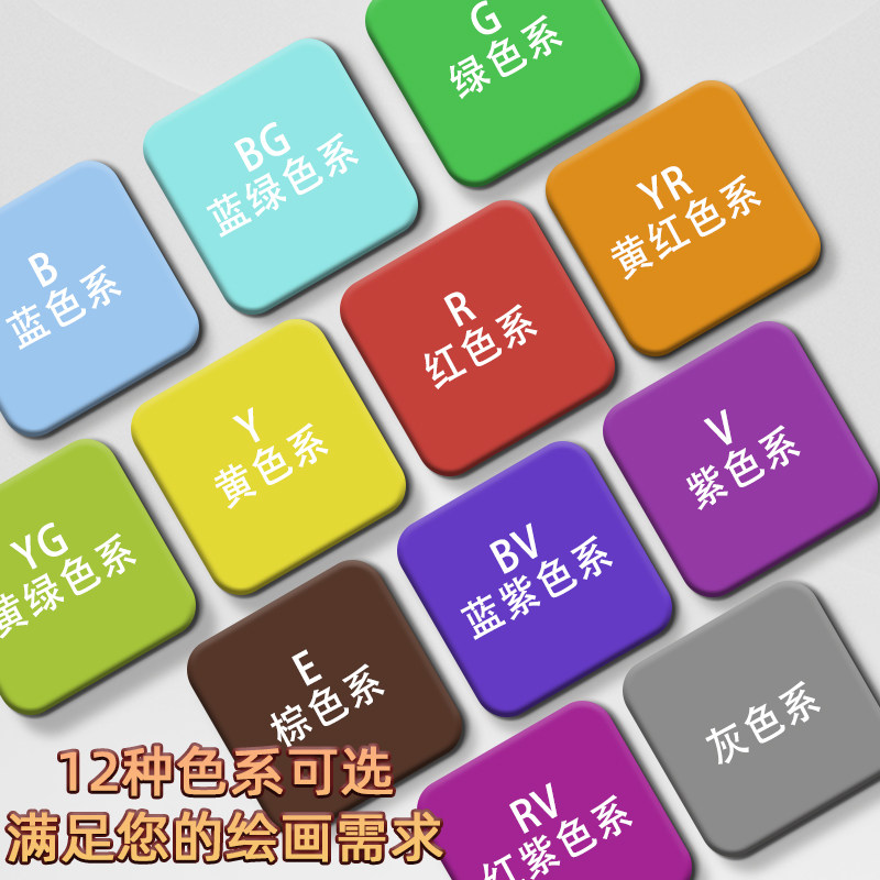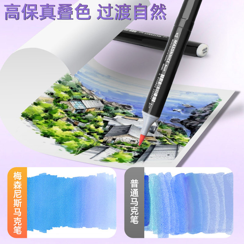 梅森尼斯马克笔软头12色24色酒精油性彩笔美术专用红色黄蓝紫色单色系自选建筑景观室内动漫卡通设计手绘画笔