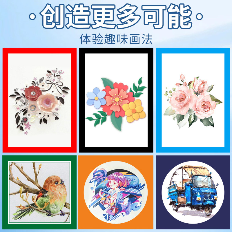 彩色边框卡纸A4美术绘画专用8k加厚230G儿童幼儿园手工纸硬外方内圆黑红黄蓝绿灰棕色方形画框白色背景装裱画