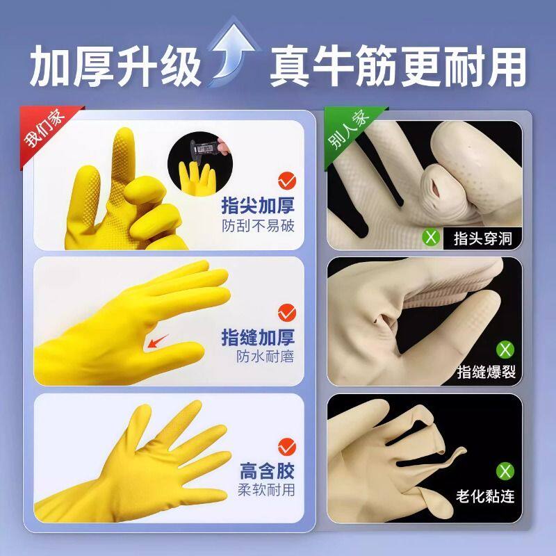 加厚橡胶牛筋乳胶手套家务女手套洗碗清洁家用干活洗衣服乳胶耐磨