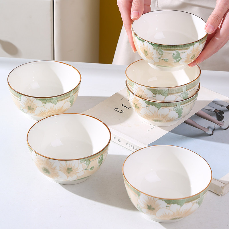 碗家用碗高脚防烫景德镇碗饭碗高级感新款描金饭碗陶瓷餐具吃饭碗