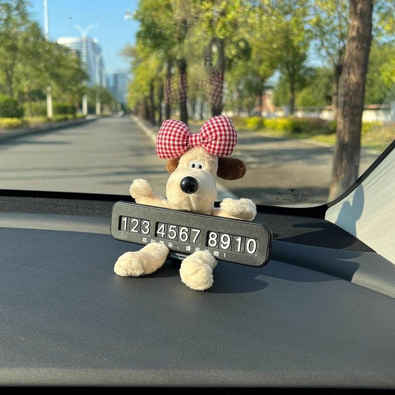 停车号码牌可爱蝴蝶结狗立体车载内饰汽车公仔摆件挪车电话牌装饰