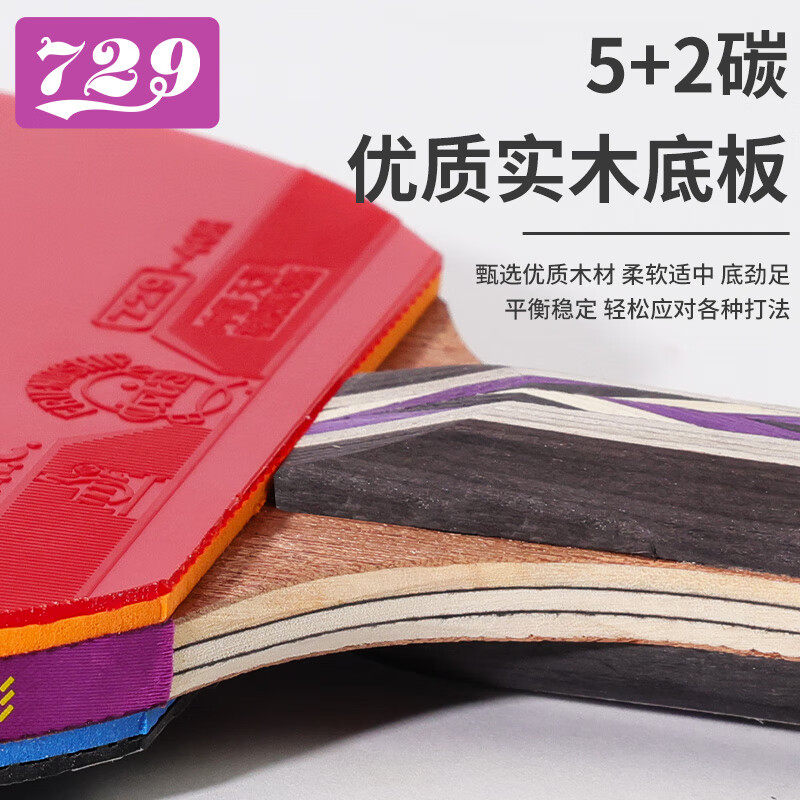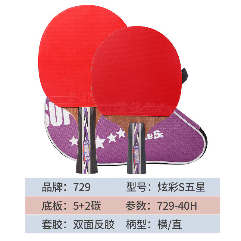 729乒乓球拍炫彩345星双面反胶横拍直拍成人儿童初学训练单拍三星