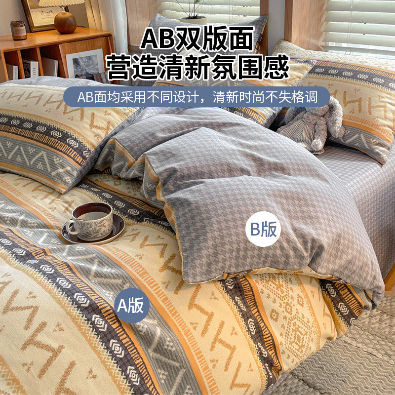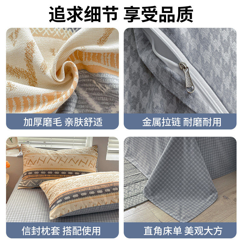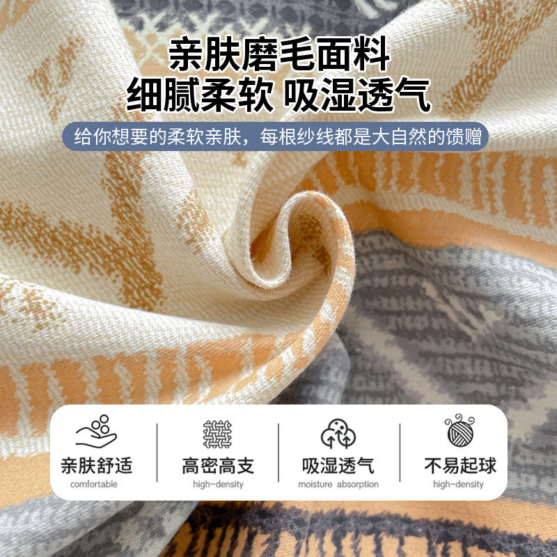 雅鹿加厚磨毛被套单件150x200x230被罩床单秋冬季保暖床上四件套