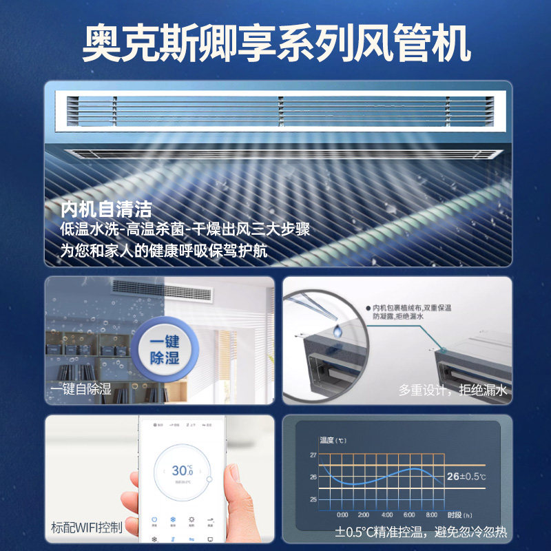 奥克斯3匹风管机家用一级全直流变频中央空调一拖一旗舰店