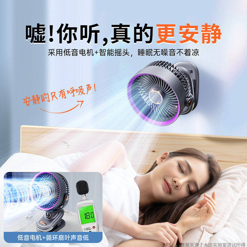 2026新款静音循环夹式摇头小风扇usb充电款超长续航电扇小型迷你小空调便携式随身学生宿舍床上办公室桌面