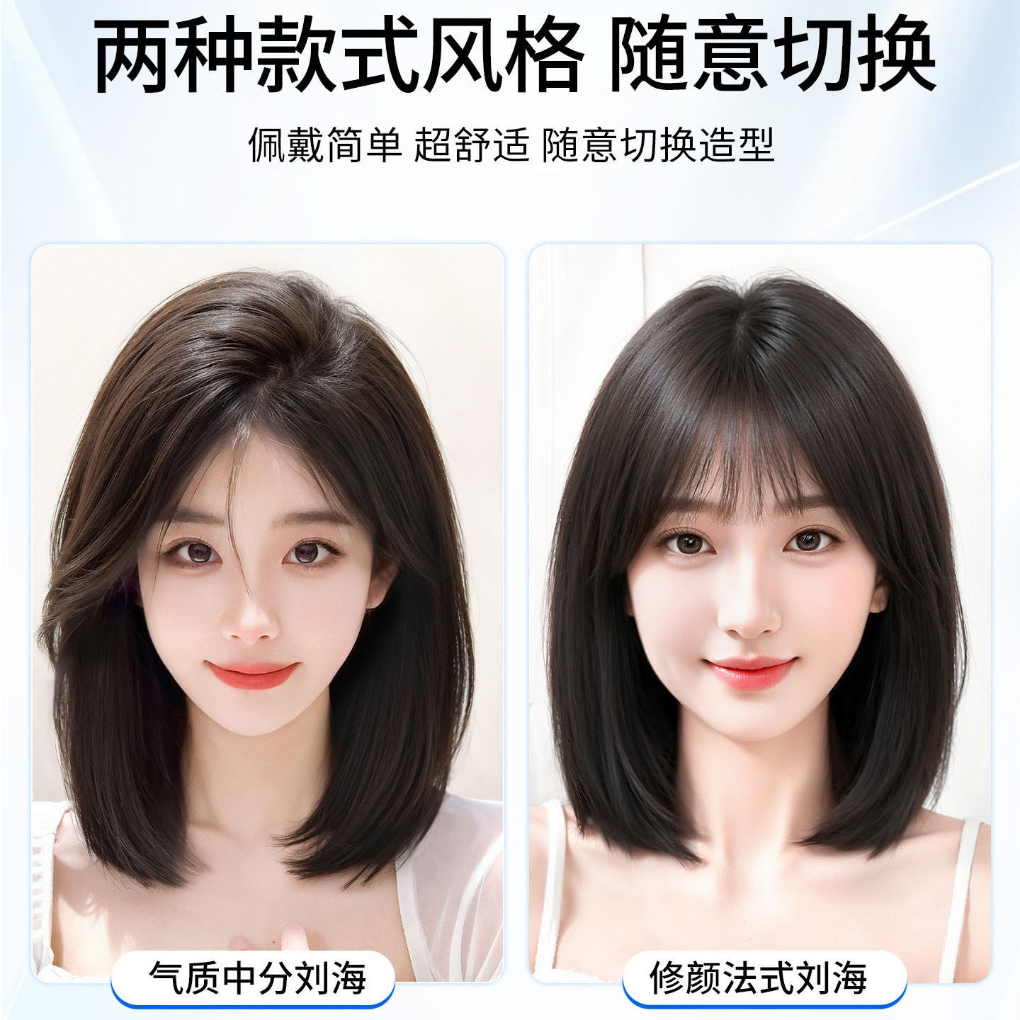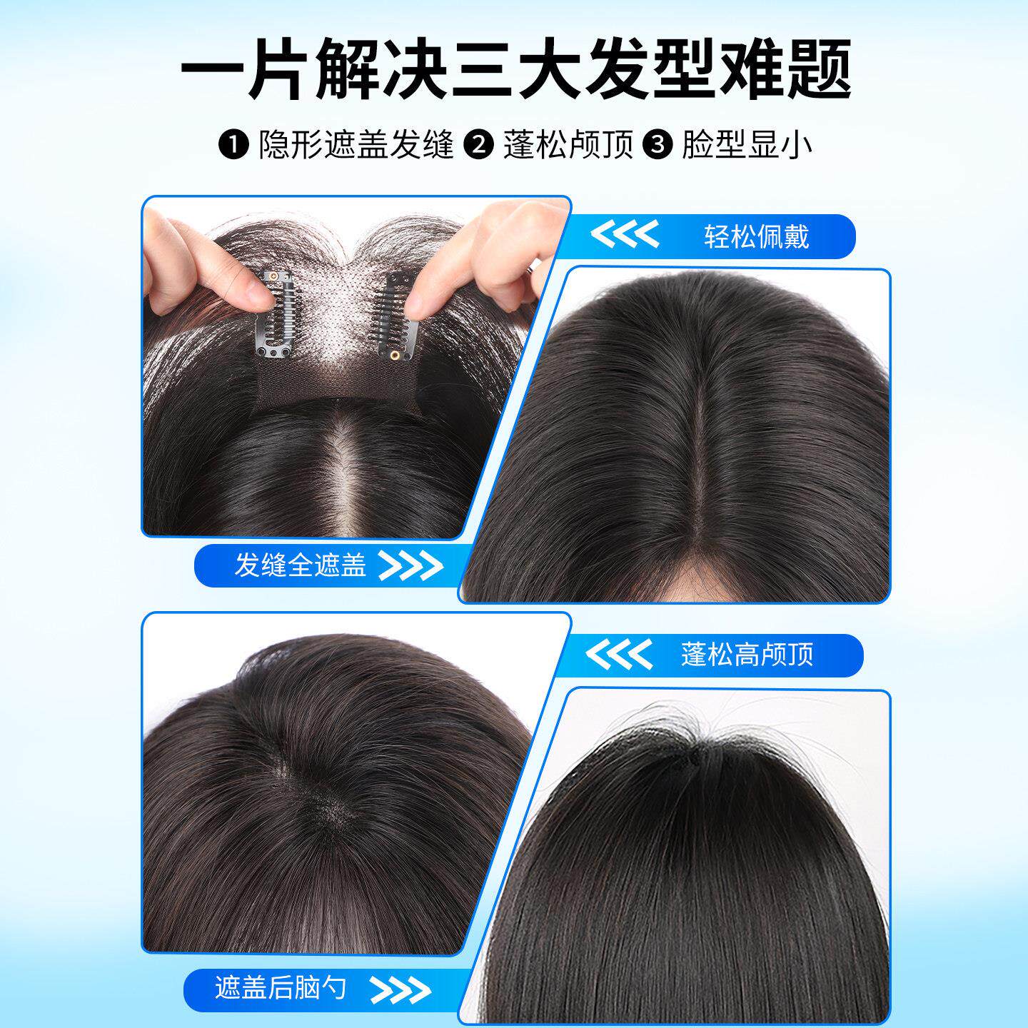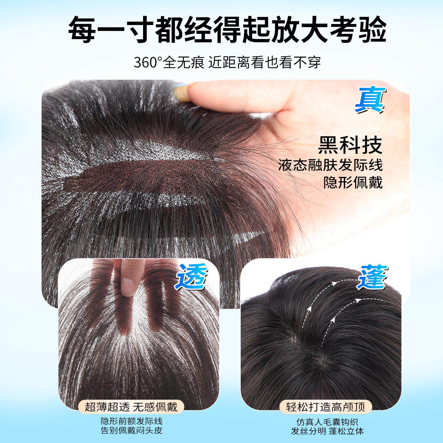 假发片女头顶增发量遮真发白发蓬松高颅顶轻薄刘海无痕补发片八字