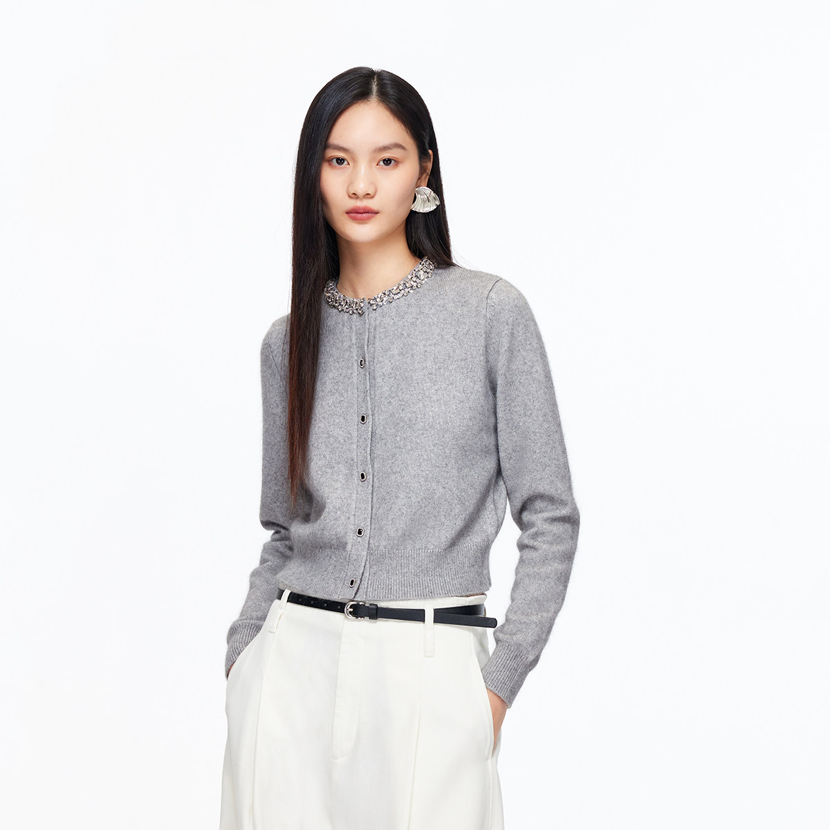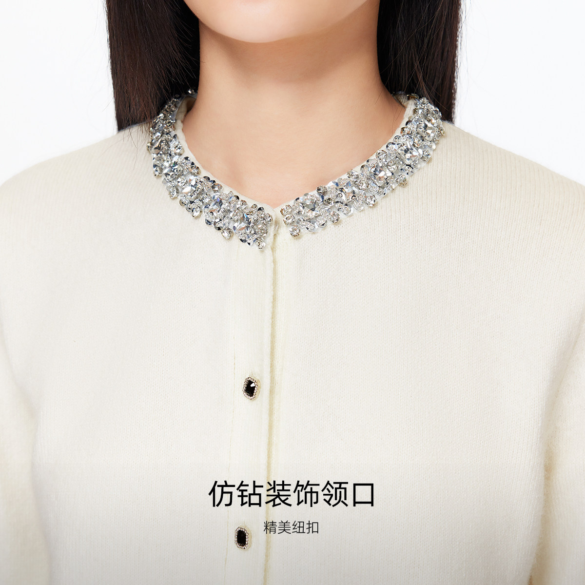 Vero Moda针织衫2025冬季新款含兔毛绵羊毛仿钻装饰开衫325413031