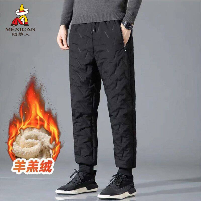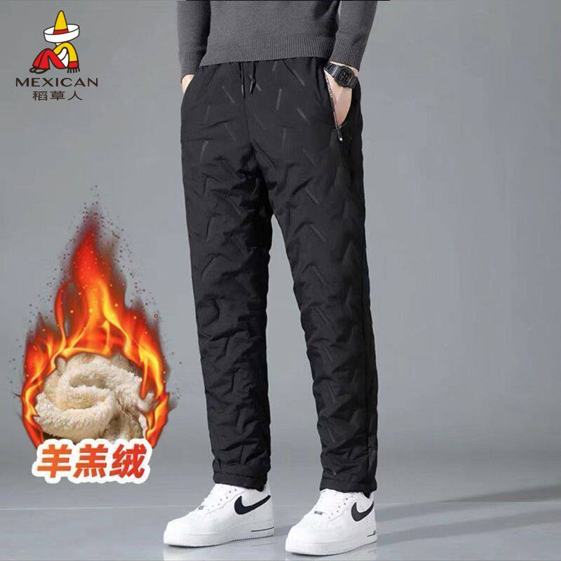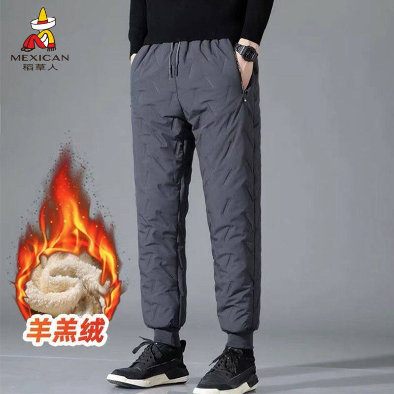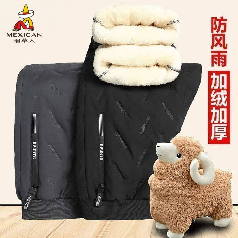 稻草人秋冬季加绒裤子男款加厚大码棉裤羊羔绒防寒保暖男士休闲裤