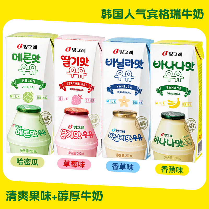 韩国宾格瑞香蕉牛奶进口饮料饮品韩剧草莓早餐奶儿童整箱批特价