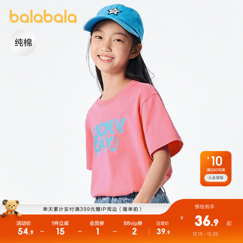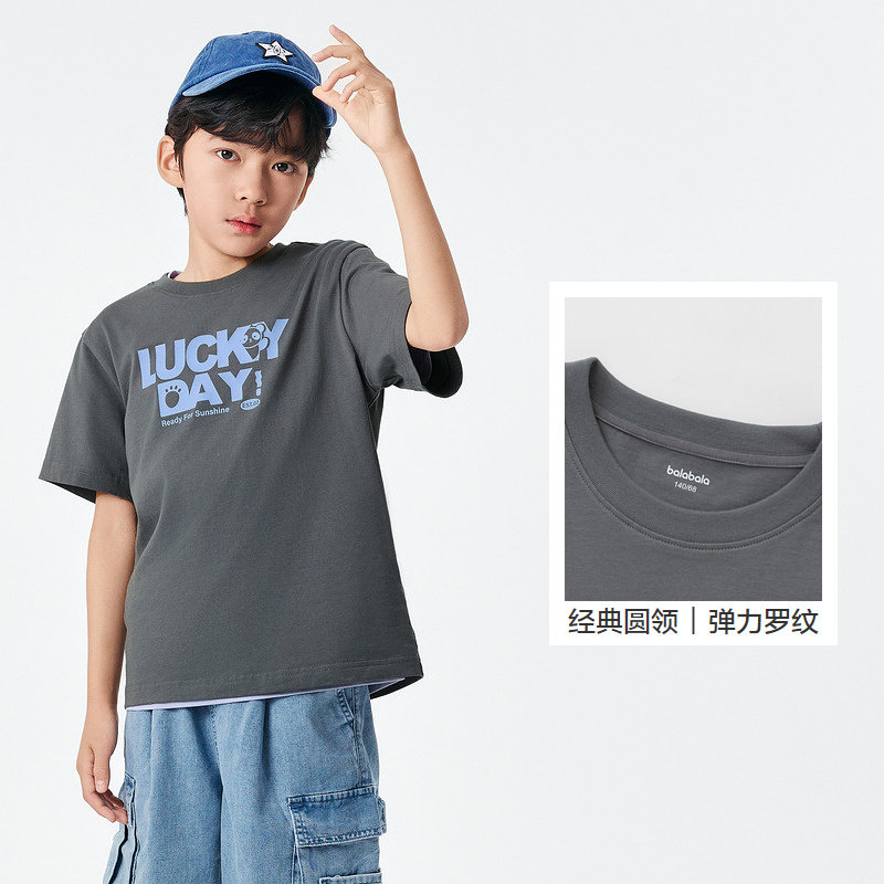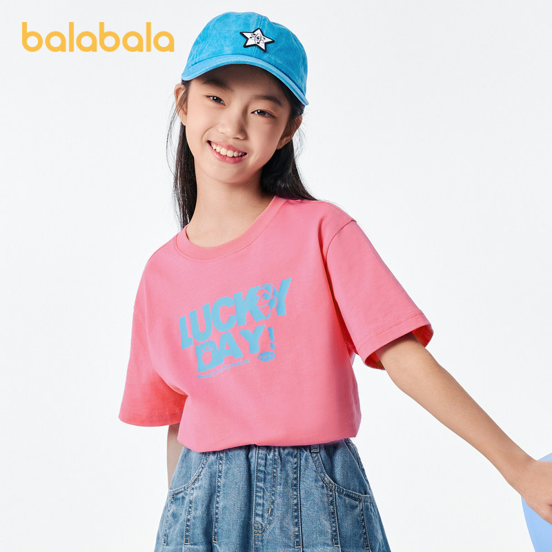 巴拉巴拉男童短袖t恤夏装女童纯棉宽松亲子装上衣撞色印花时尚潮