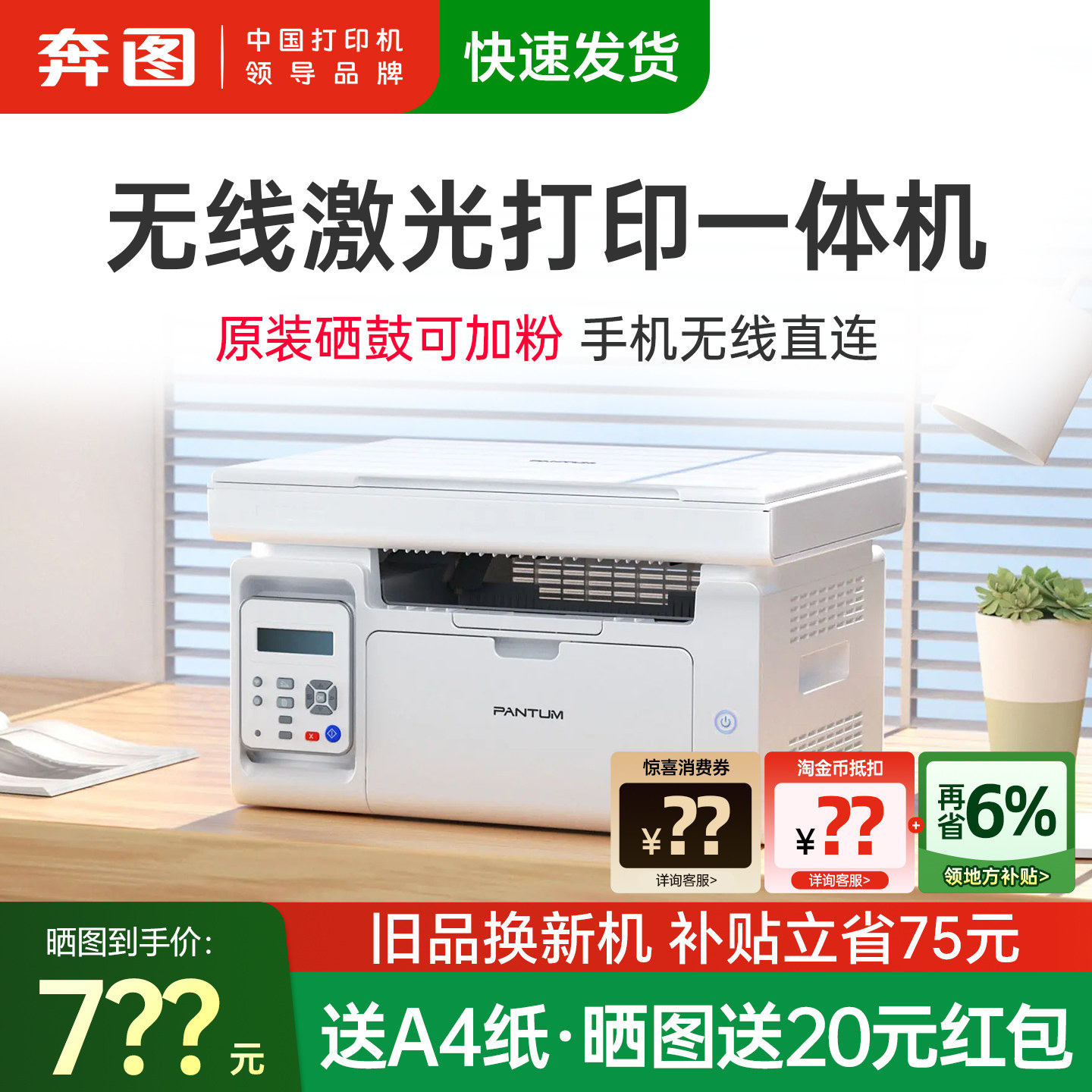 奔图M6200W黑白激光无线wifi打印机复印扫描一体机复印件办公商用三合一打印家用小型办公室专用硒鼓可加粉