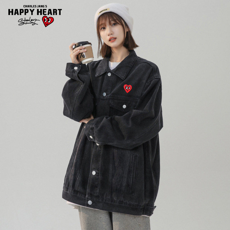 查尔斯桃心 美式复古水洗牛仔夹克男2025新款春秋季排扣翻领外套