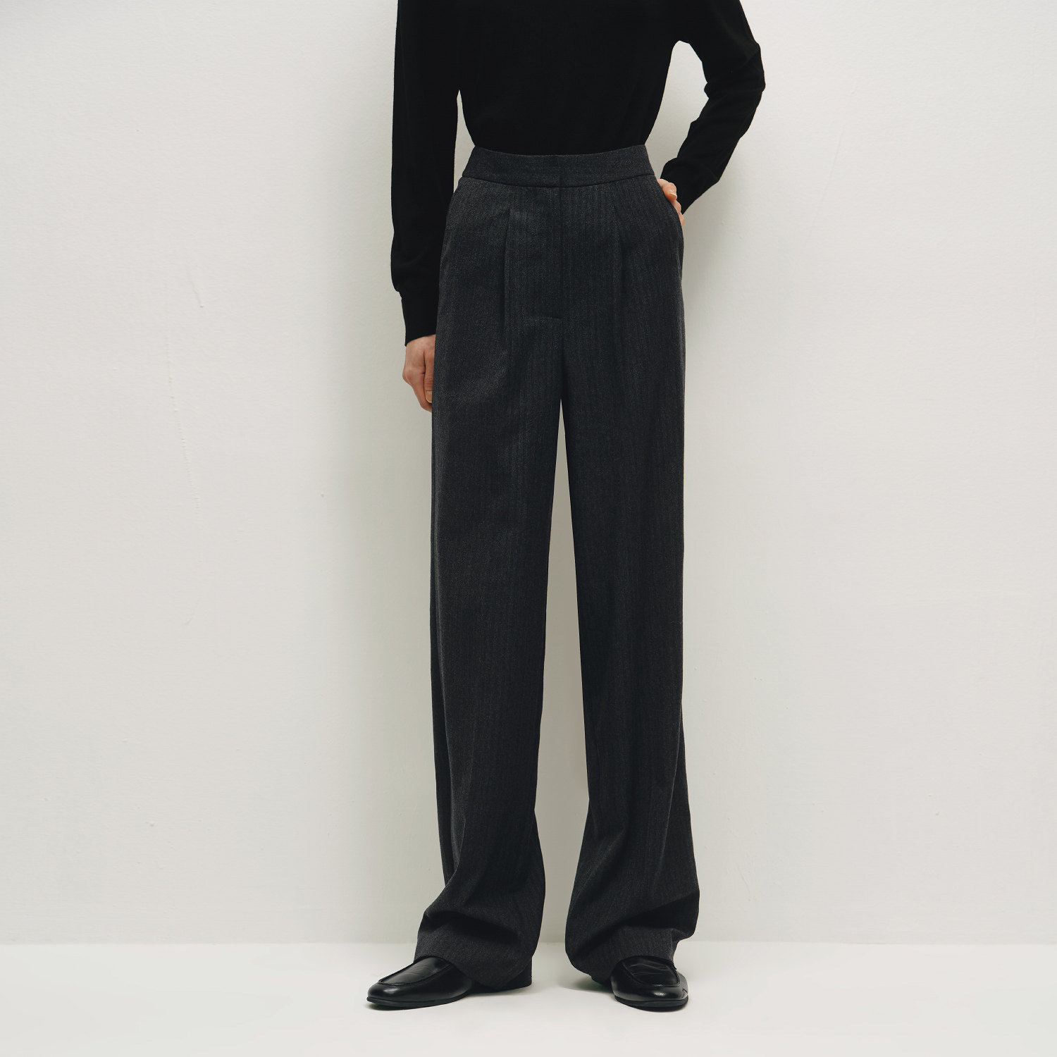 逸阳2025冬新款高腰直筒裤女黑宽松显瘦加厚大码加绒休闲西装长裤