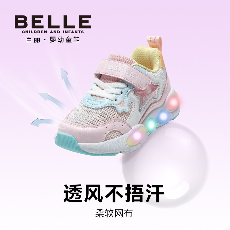 百丽童鞋2026春季新品男女童萌星儿童运动鞋网面透气宝宝休闲鞋