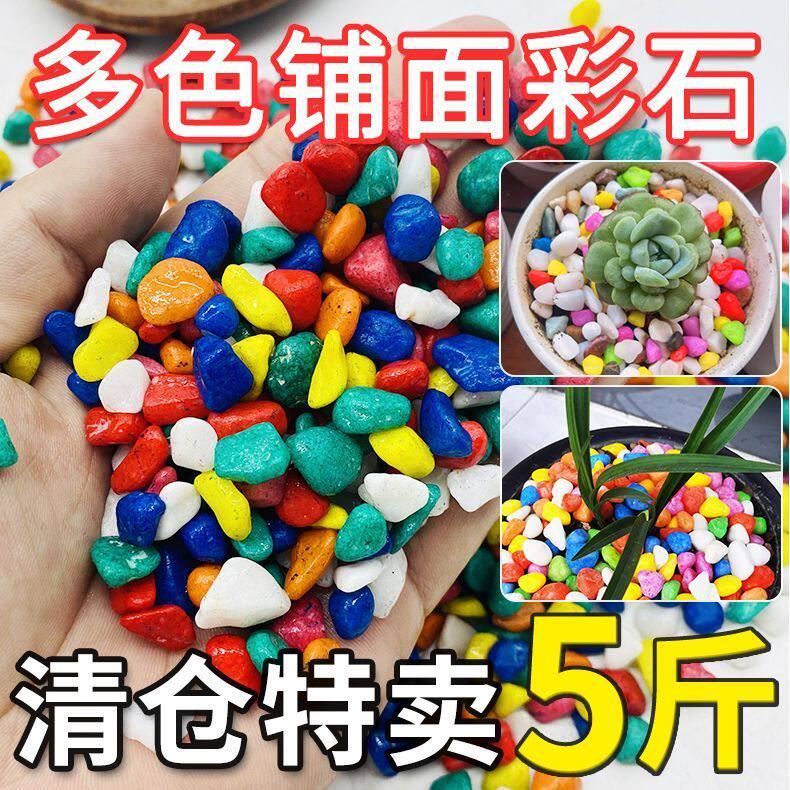 七彩石多肉铺面石园艺石子天然彩石花盆装饰小石子鱼缸底砂五彩石