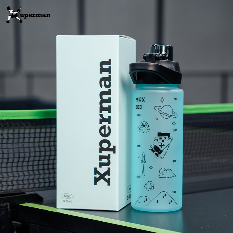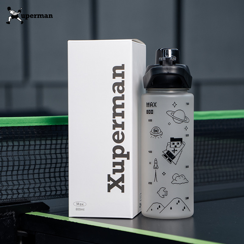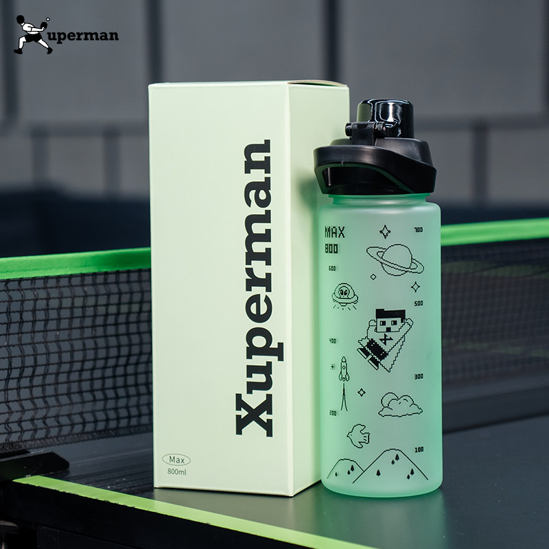 Xuperman运动水杯大容量原创像素卡通图案高颜值户外骑行便携杯子